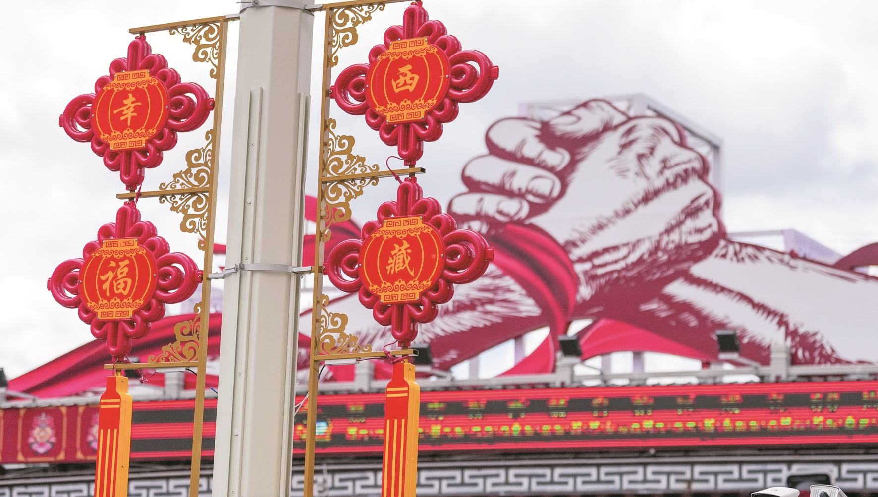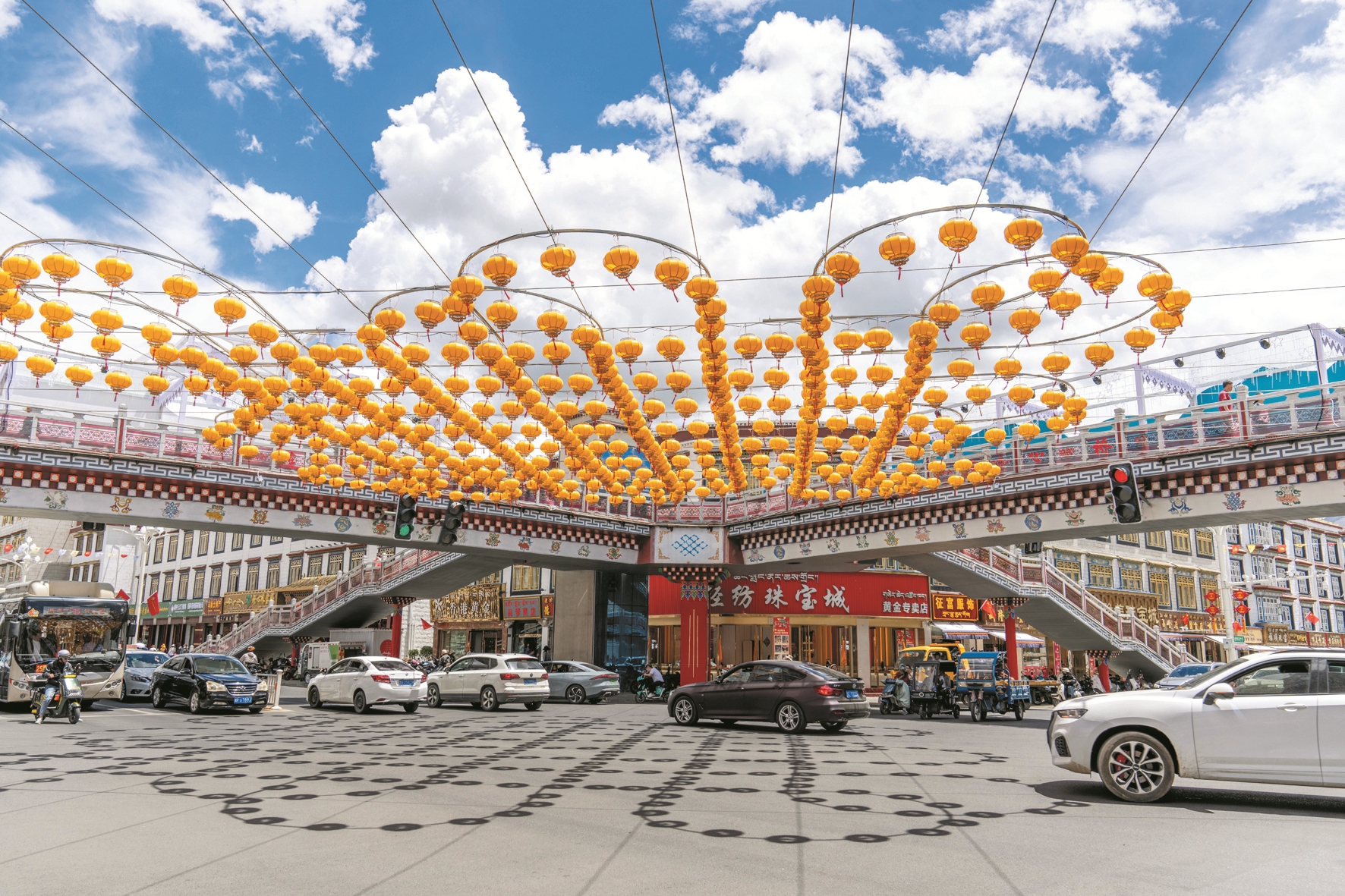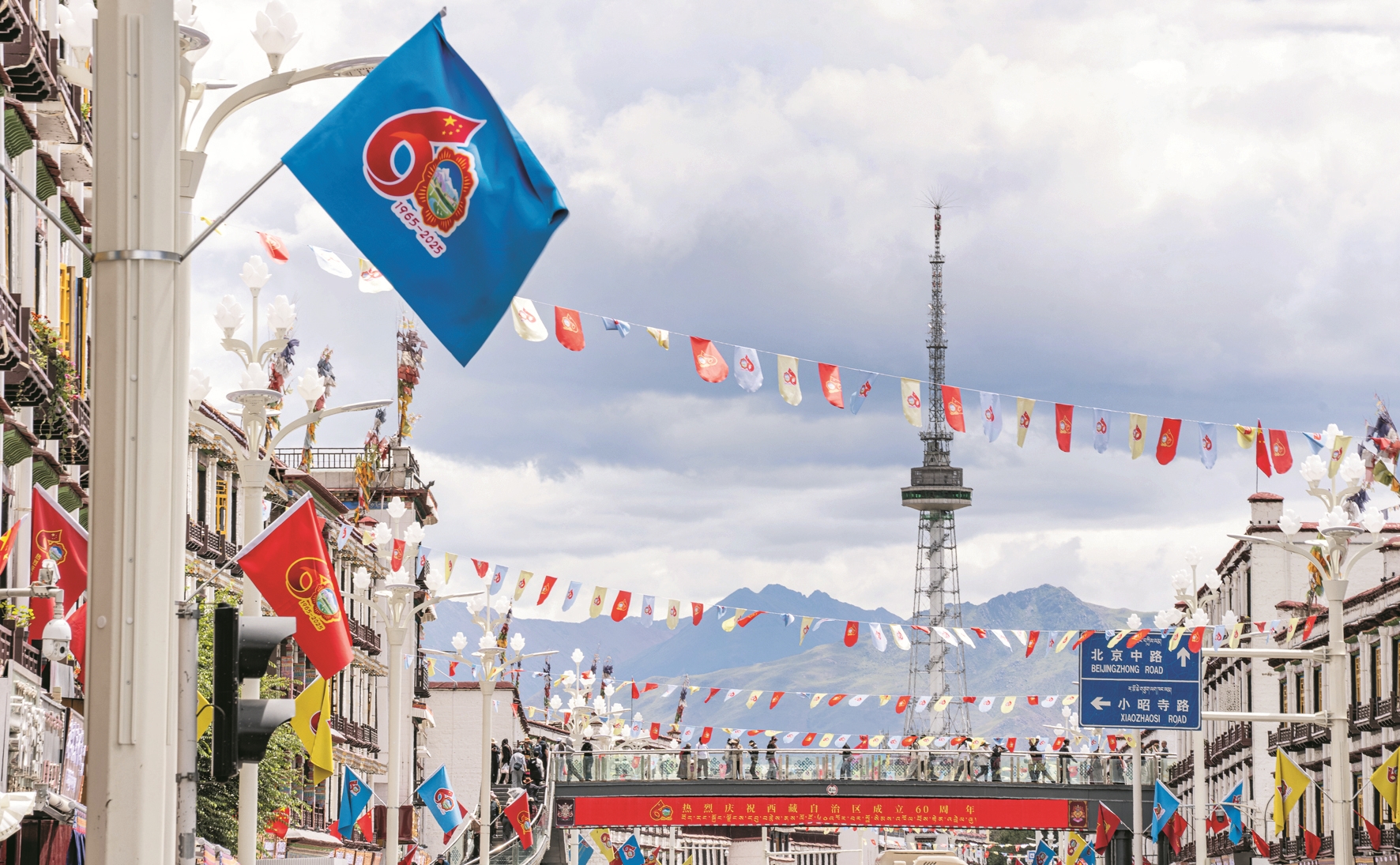 在庆祝西藏自治区成立60周年之际,拉萨街头张灯结彩,处处洋溢着喜庆氛围。这是8月19日拍摄的拉萨市街景。新华社记者 晋美多吉摄