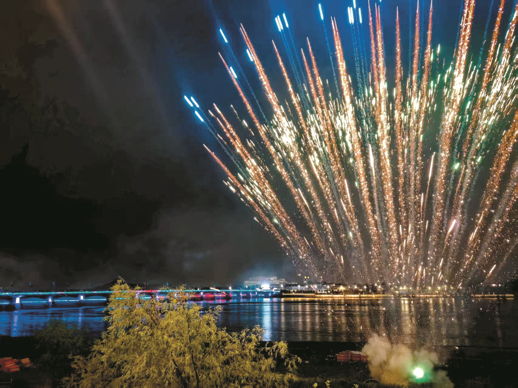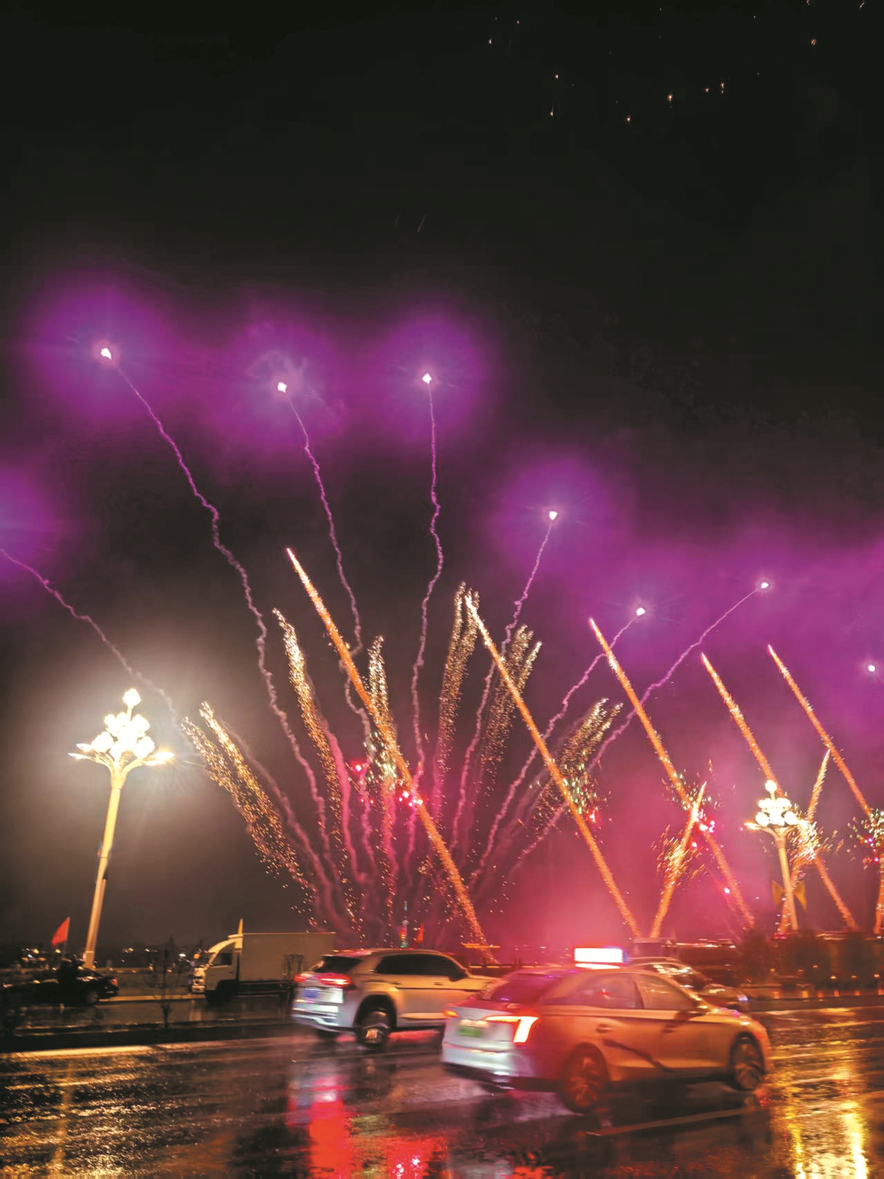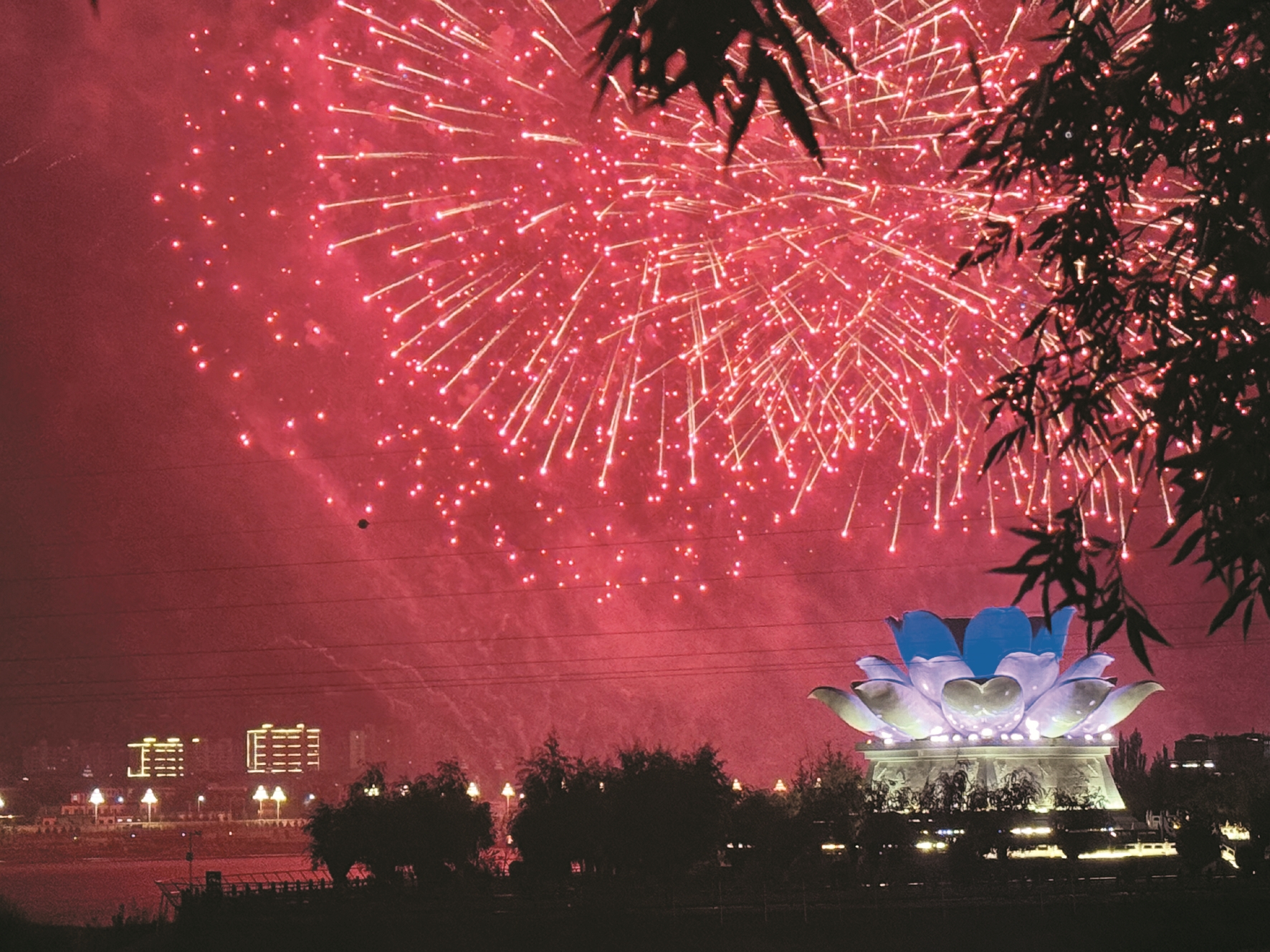 晚上九时许,随着第一声礼炮划破夜空,万千礼花次第腾空,火红的如牡丹绽放,映照着高原儿女的赤诚;银白的似菊花吐蕊,点缀着雪域大地的纯净;金色的若麦浪翻滚,呼应着这片土地的丰收与希望。