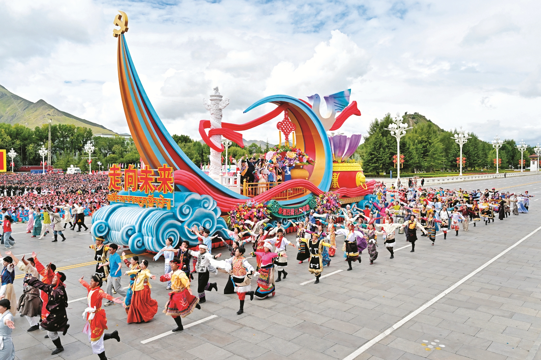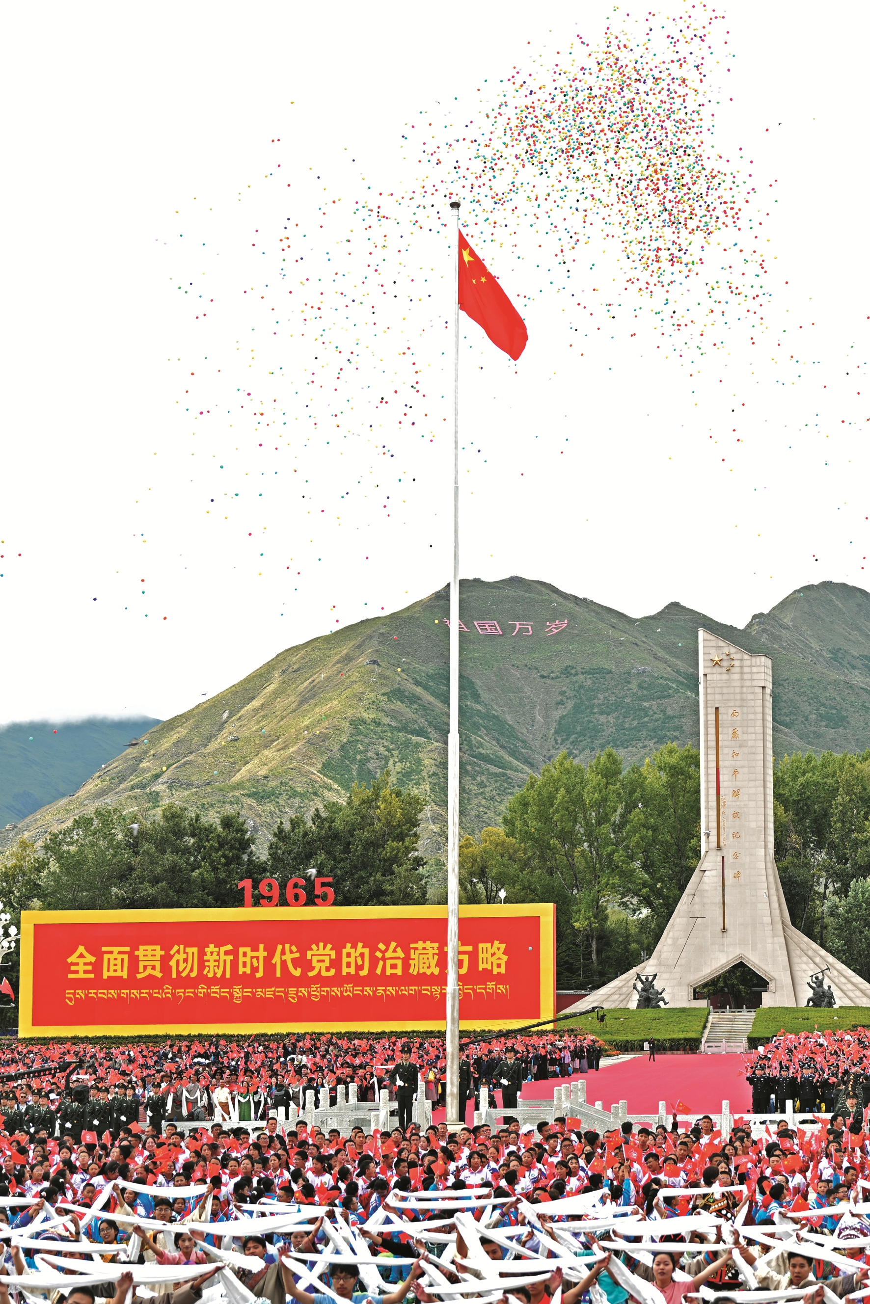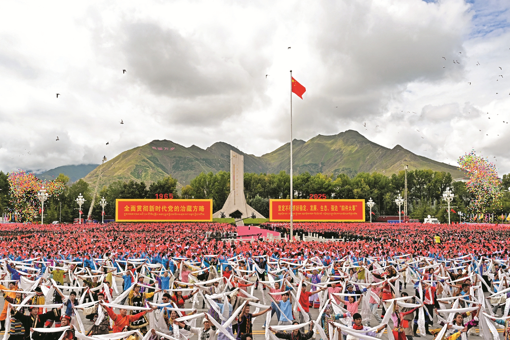 8月21日上午,西藏各族各界干部群众约2万人欢聚拉萨市布达拉宫广场,热烈庆祝西藏自治区成立60周年。