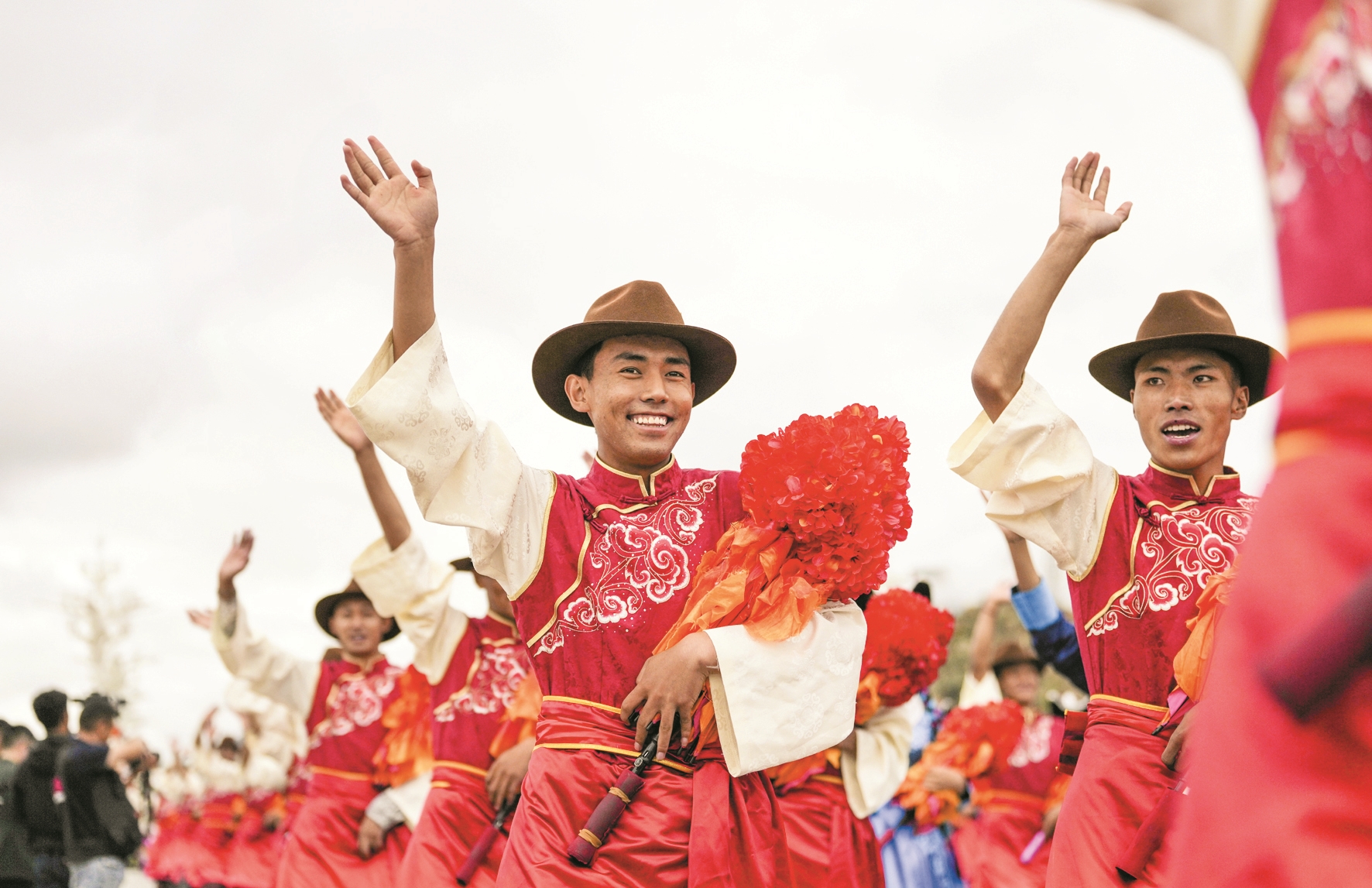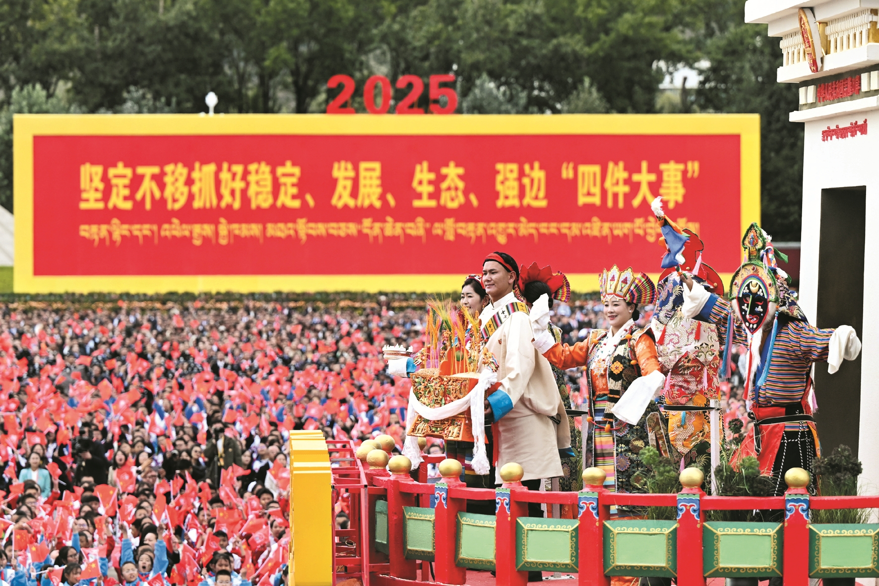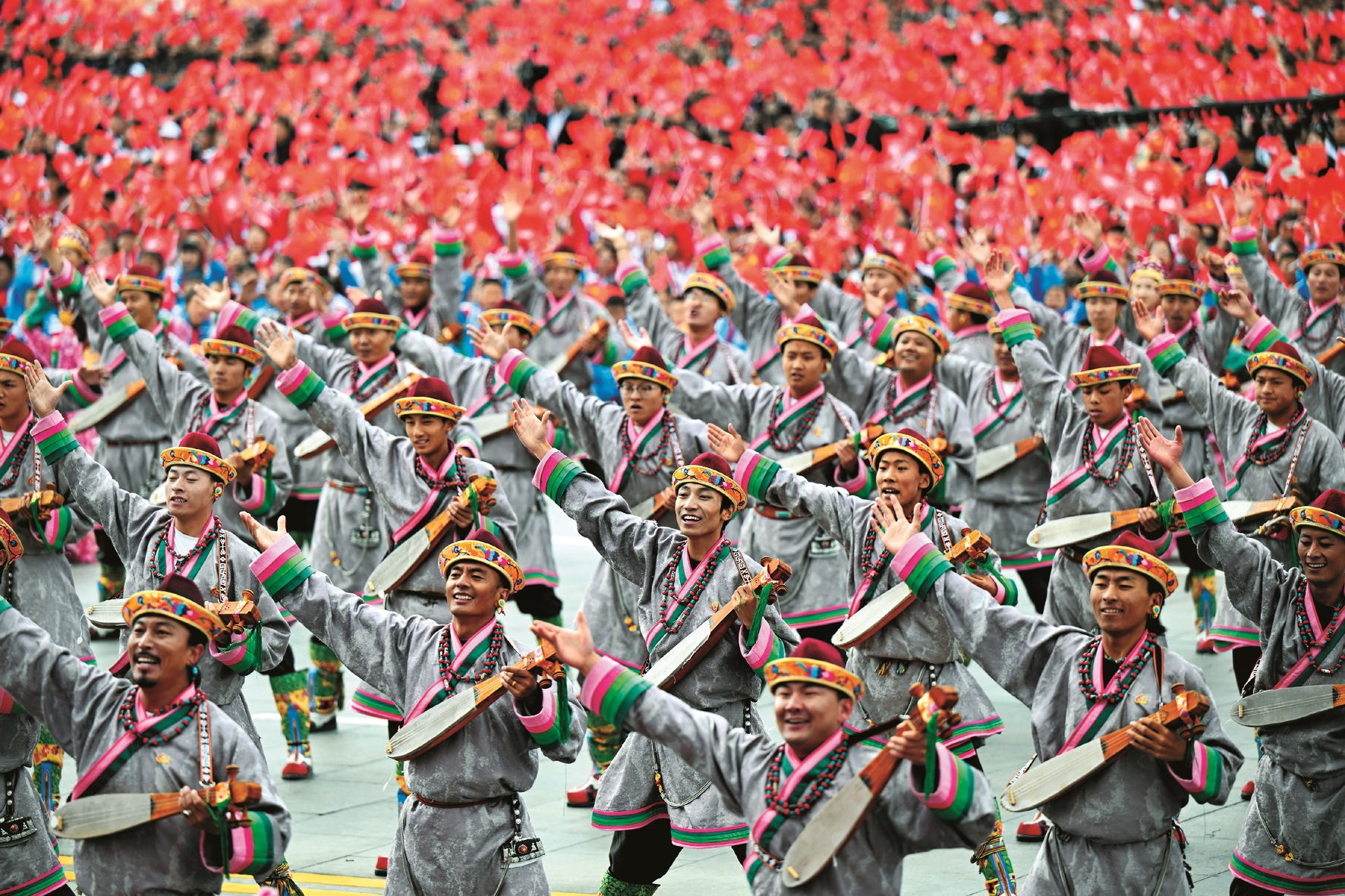 8月21日上午,西藏各族各界干部群众约2万人欢聚拉萨市布达拉宫广场,热烈庆祝西藏自治区成立60周年。