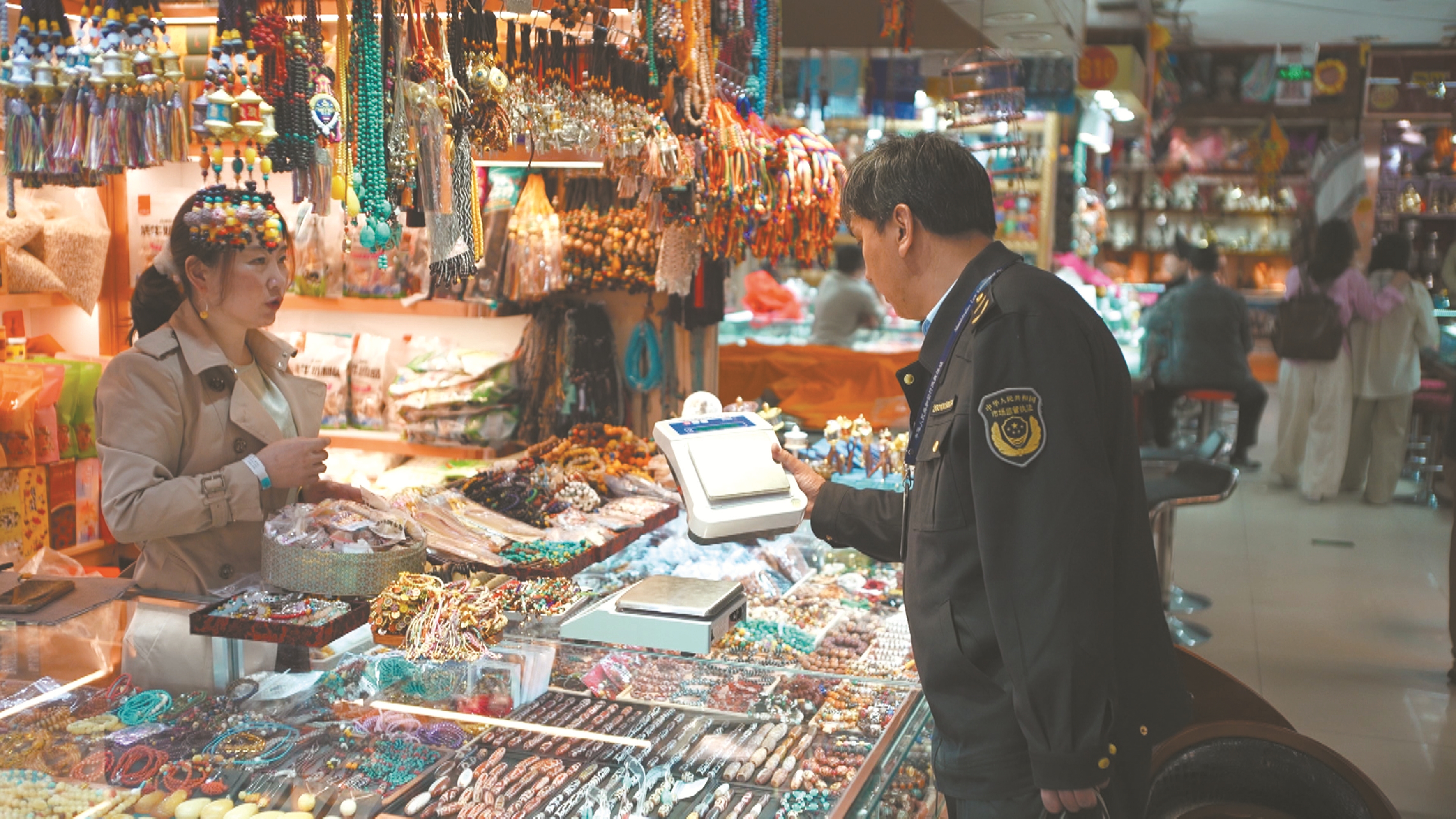 此次检查以八廓街周边旅游购物场所为重点,采取随机抽查方式,对商户营业证照、食品安全、商品明码标价、计量器具使用等情况进行了仔细排查。对发现的问题,执法人员现场督促指导商家规范经营、立即整改。检查中发现,多家商户使用的计量器具存在逾期未检的情况,执法人员及时协调计量测试所提供上门检测服务,确保计量准确可靠。