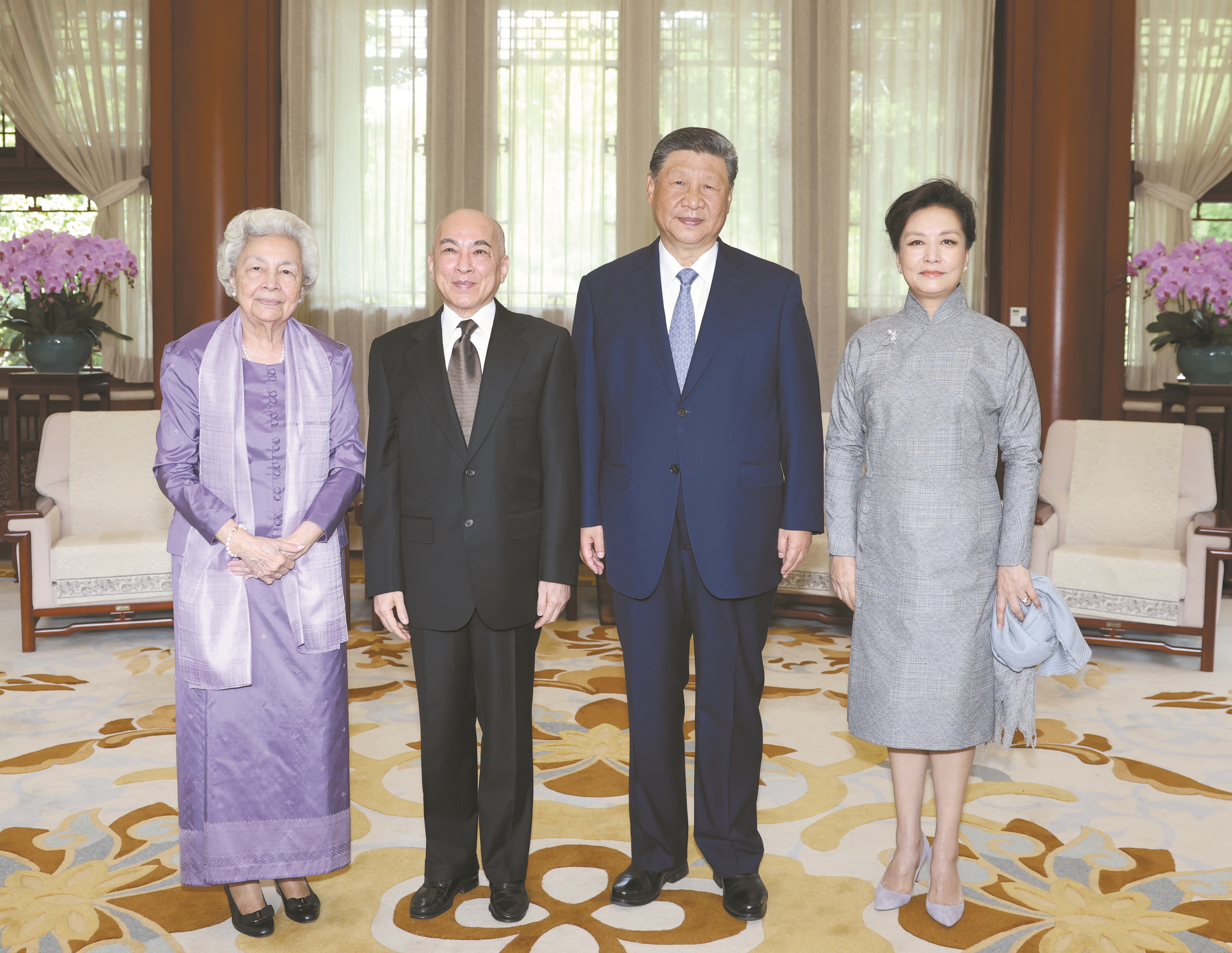 8月26日上午,国家主席习近平和夫人彭丽媛在北京中南海亲切会见柬埔寨国王西哈莫尼和太后莫尼列。 新华社记者 黄敬文摄