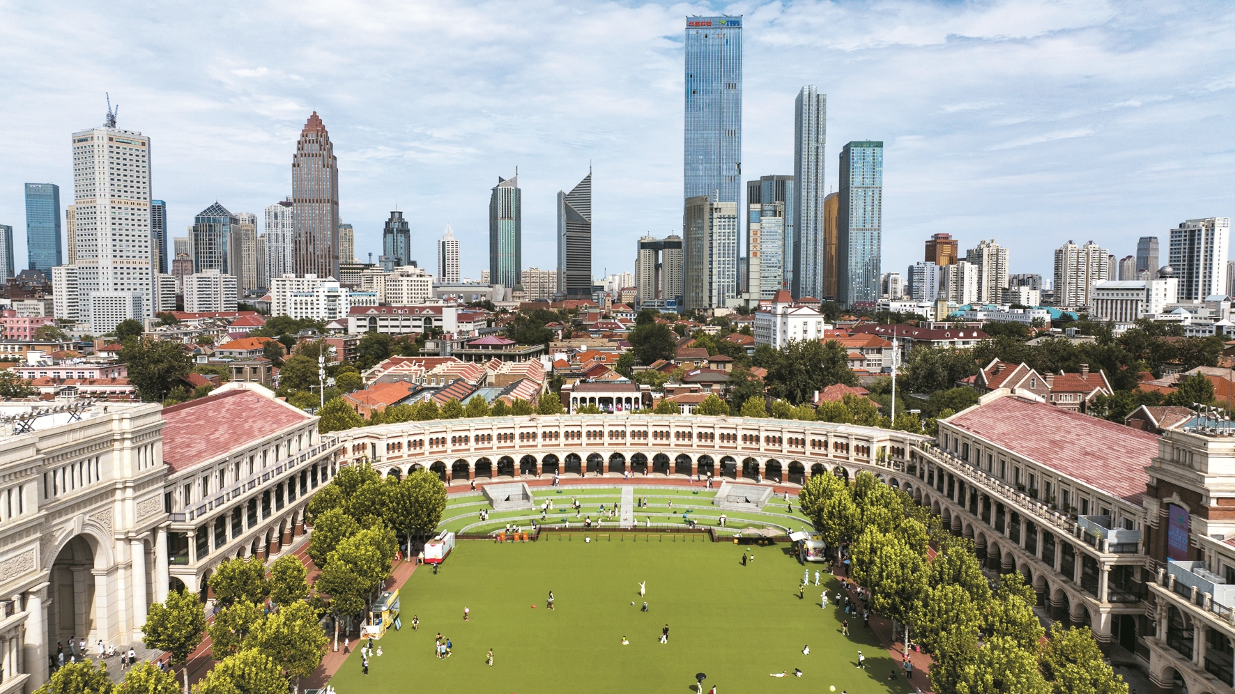 2025年上海合作组织峰会于8月31日至9月1日在天津举行。继上海、北京、青岛之后,天津成为第四个举办上合组织峰会的中国城市。华灯璀璨、海晏河清的天津正迎来好时节,加上城市中随处可见的活力身影,构成了一道道靓丽的风景线。 这是位于天津五大道历史文化街区的民园广场(无人机照片)。 新华社记者 赵子硕摄