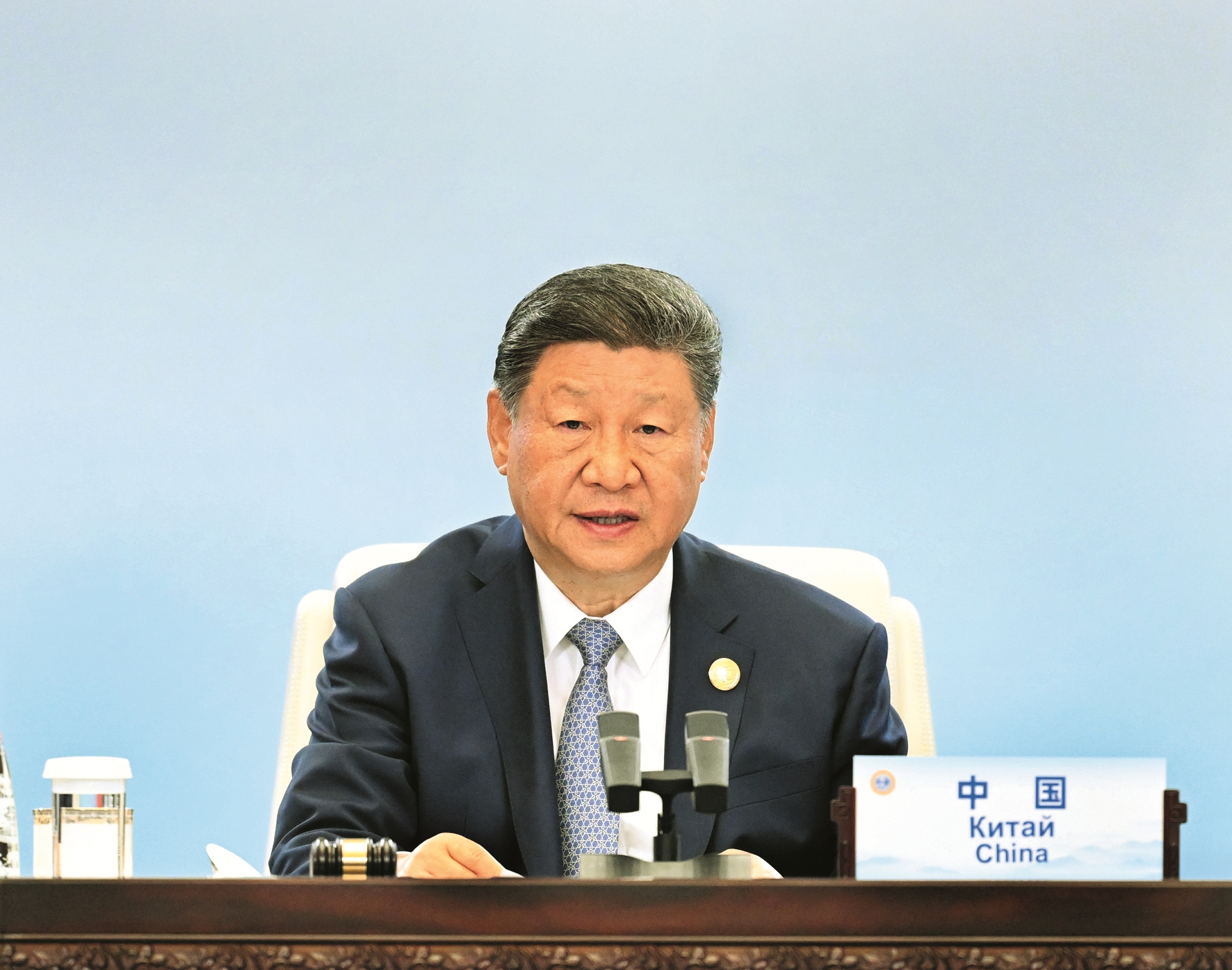 9月1日上午,上海合作组织成员国元首理事会第二十五次会议在天津梅江会展中心举行。中国国家主席习近平主持会议并发表题为《牢记初心使命 开创美好未来》的重要讲话。 新华社记者 谢环驰摄