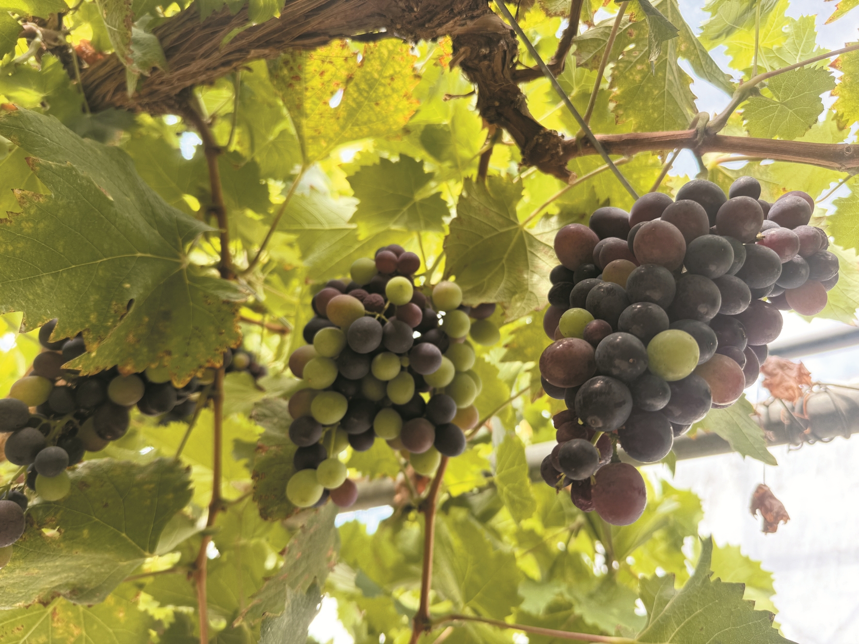 走进采摘园,果香扑面而来。为让葡萄扎根高原,园区团队在达孜琢磨数年,经反复试种、改良,终培育出抗病性强、适配高原气候的品种——夏黑葡萄。夏黑葡萄紫黑饱满,透着诱人光泽。园方坚持不打农药,靠人工除草、物理防虫保品质,游客尝着清甜果肉,提篮穿梭藤蔓间,笑声不断。