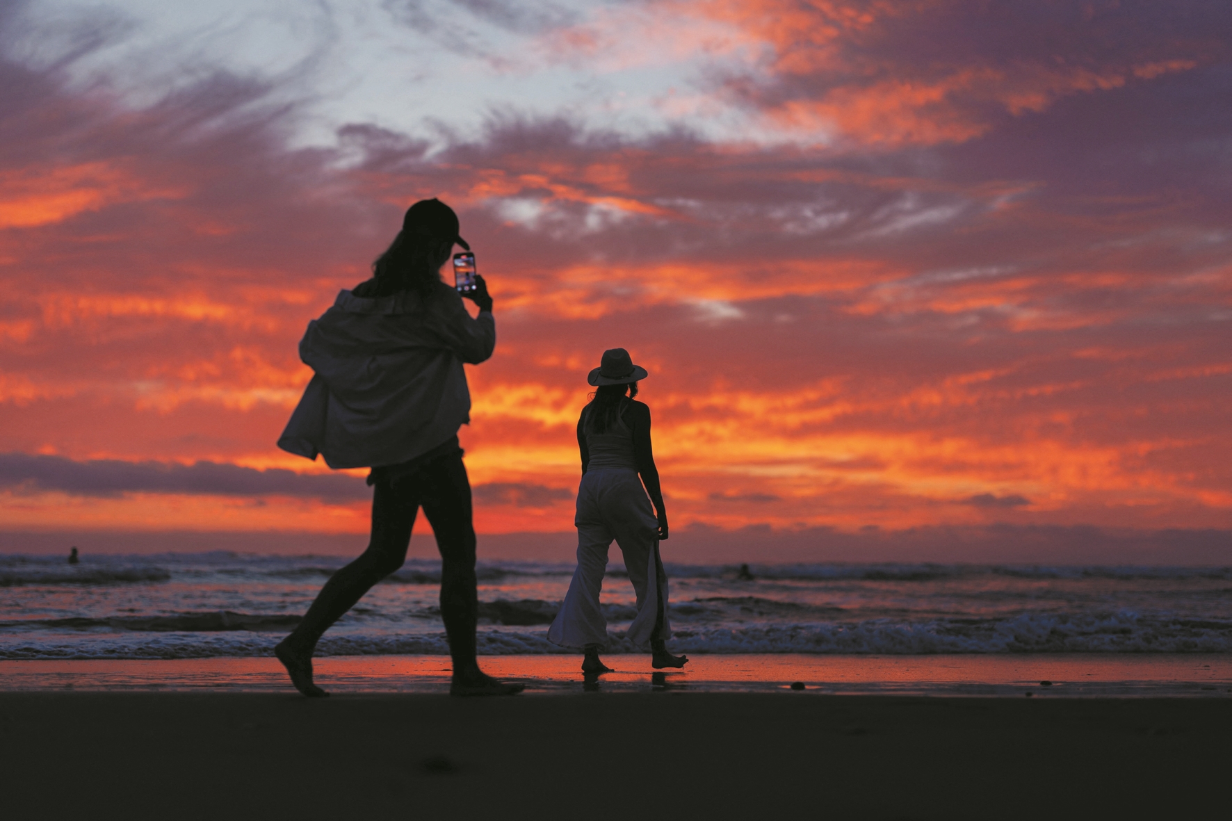 图为九月一日,人们在美国加利福尼亚州恩西尼塔斯的海滩欣赏日落。