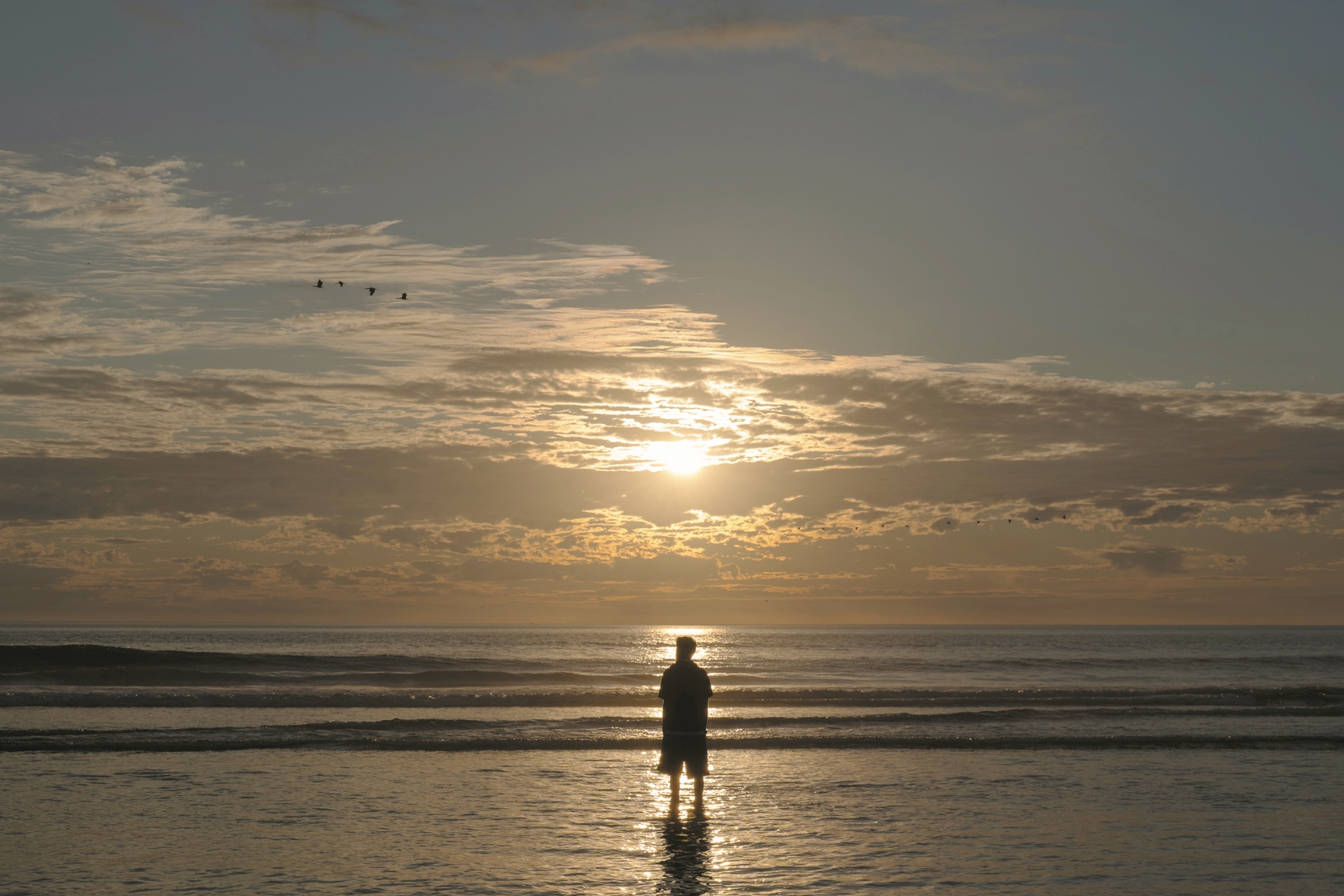 图为8月30日,一名男子在美国俄勒冈州的海滩休闲。(新华社发)