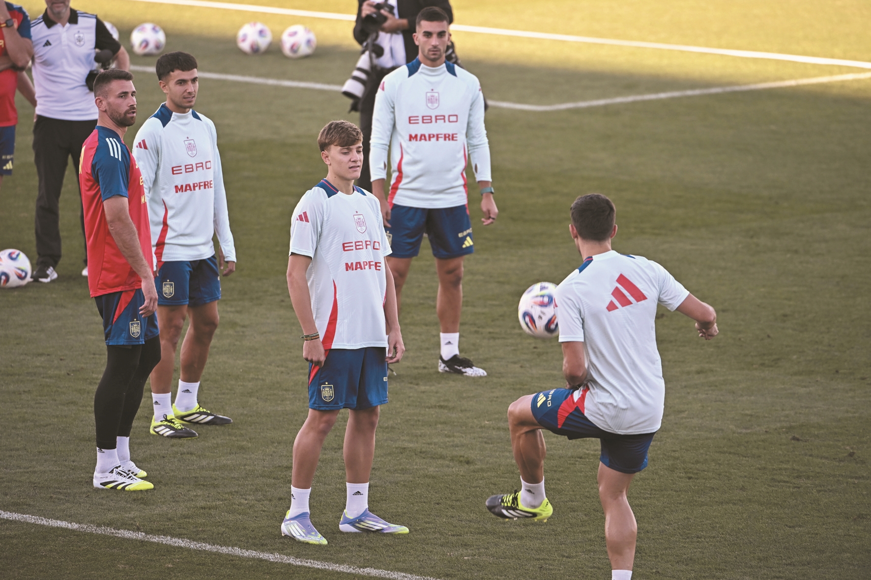 9月1日,西班牙国家足球队在马德里进行赛前训练,备战4日与保加利亚队的世界杯欧洲区预选赛。 图为当日,西班牙队球员在训练中。(新华社发)