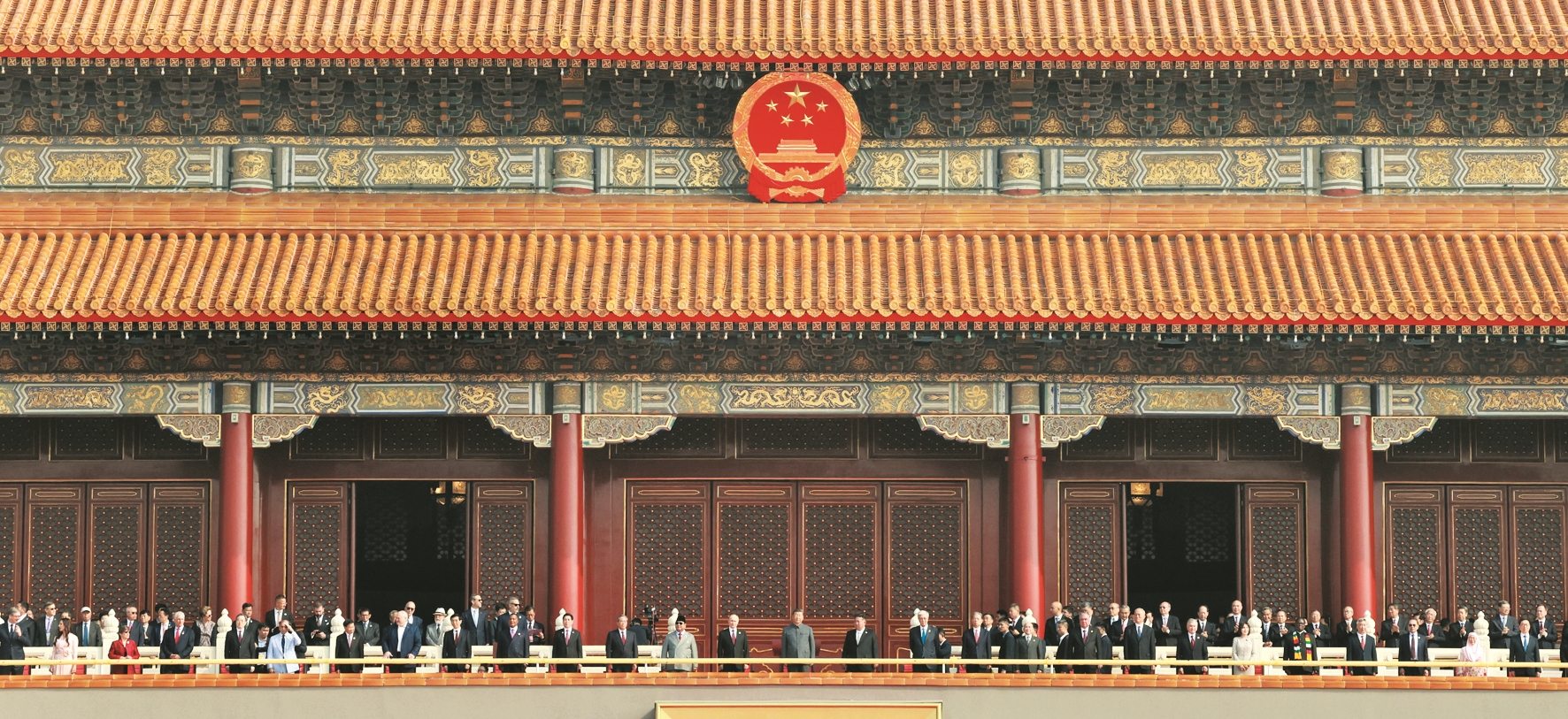 九月三日,纪念中国人民抗日战争暨世界反法西斯战争胜利八十周年大会在北京天安门广场隆重举行。这是中共中央总书记、国家主席、中央军委主席习近平等在天安门城楼上。 新华社记者 王 晔摄