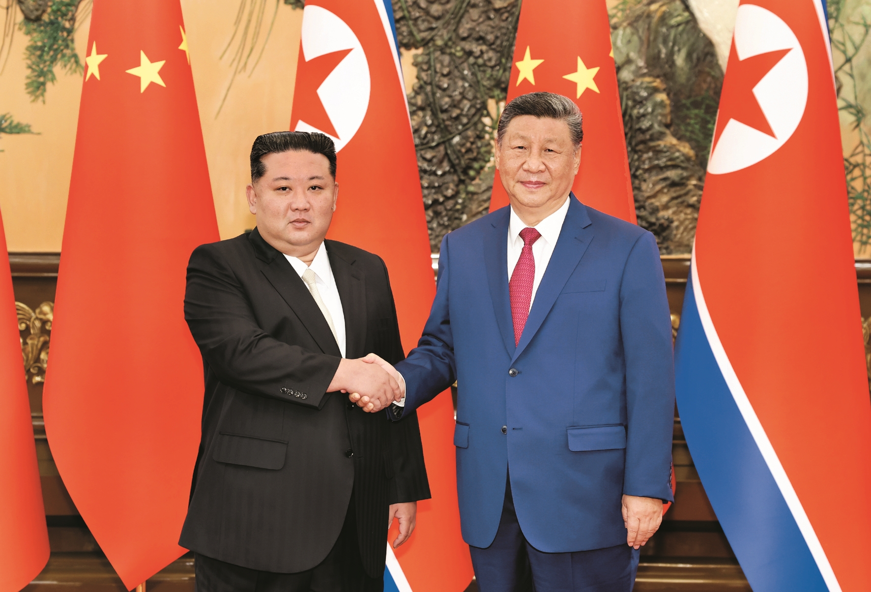 习近平指出,中朝是命运与共、守望相助的好邻居、好朋友、好同志。中朝友谊源远流长,两国都是共产党领导的社会主义国家,有着共同的理想信念和奋斗目标。金正恩总书记来华出席纪念中国人民抗日战争暨世界反法西斯战争胜利80周年活动,体现了朝方维护二战胜利成果的坚定意志,也为中朝两党两国进一步发展友好合作关系提供了重要契机。