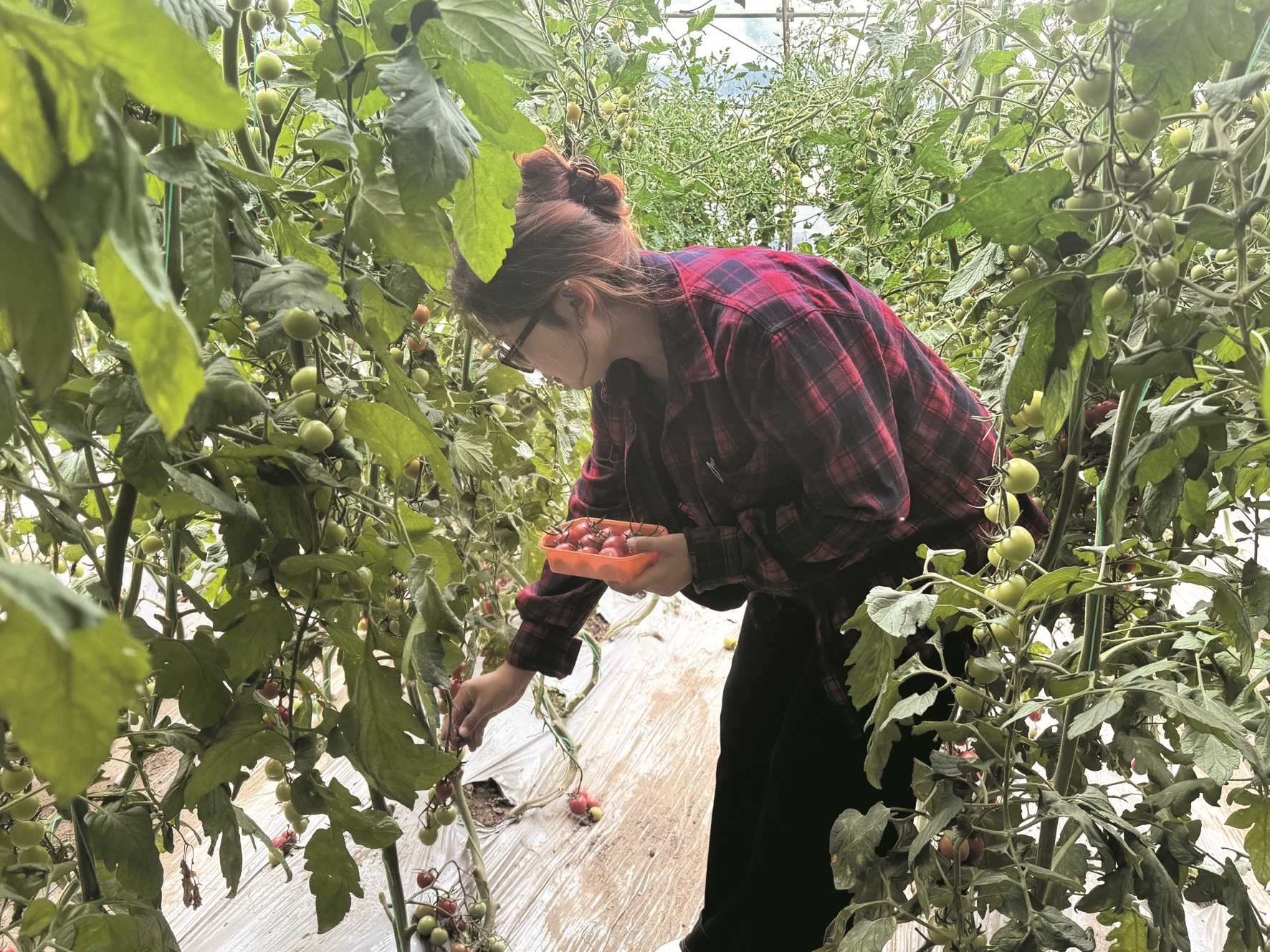 图为市民游客采摘圣女果、品尝水果玉米。 拉萨融媒记者 满文妍摄