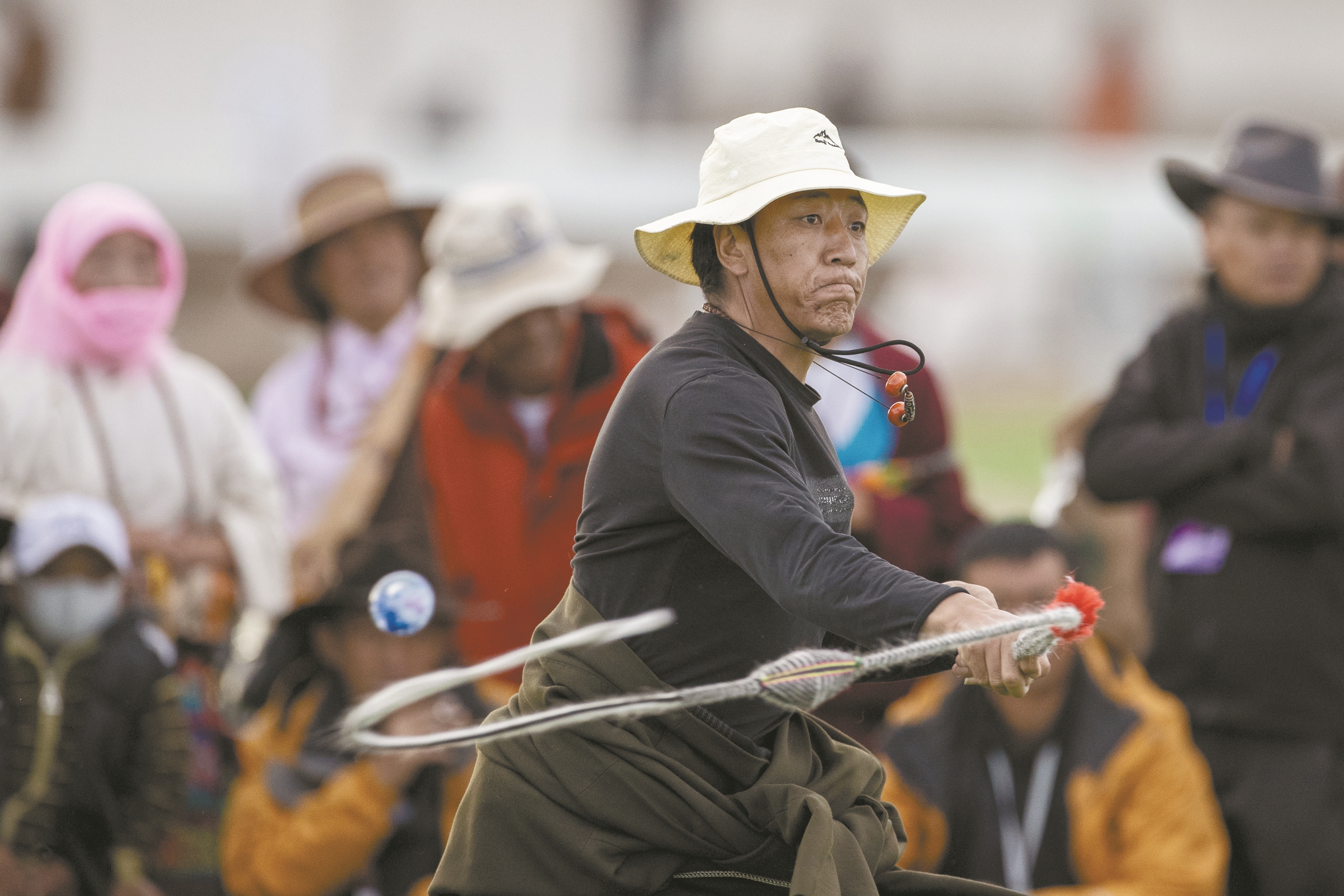 图③为9月6日,在那曲市恰青赛马节现场,一名选手们参加乌尔朵比赛。