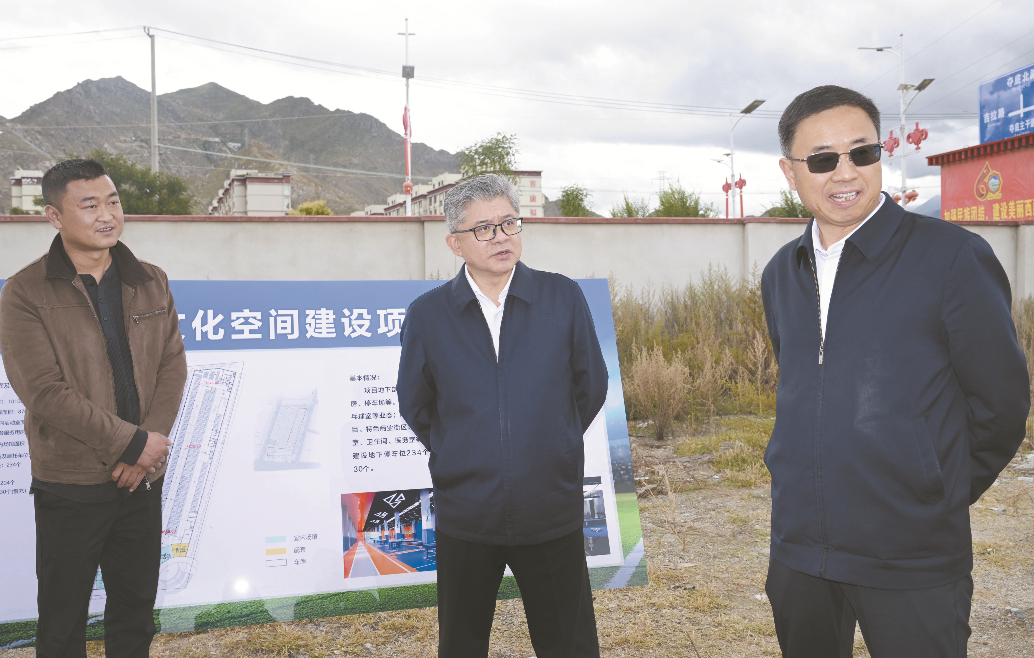 9月8日,市委副书记、市长王强前往城关区夺底街道,实地调研巴斯公共文化空间、易措湖庄园项目建设,宣讲习近平总书记在西藏视察时的重要讲话精神。这是王强在巴斯公共文化空间项目现场,详细了解项目规划、运营模式等情况。拉萨融媒记者 久美顿珠摄