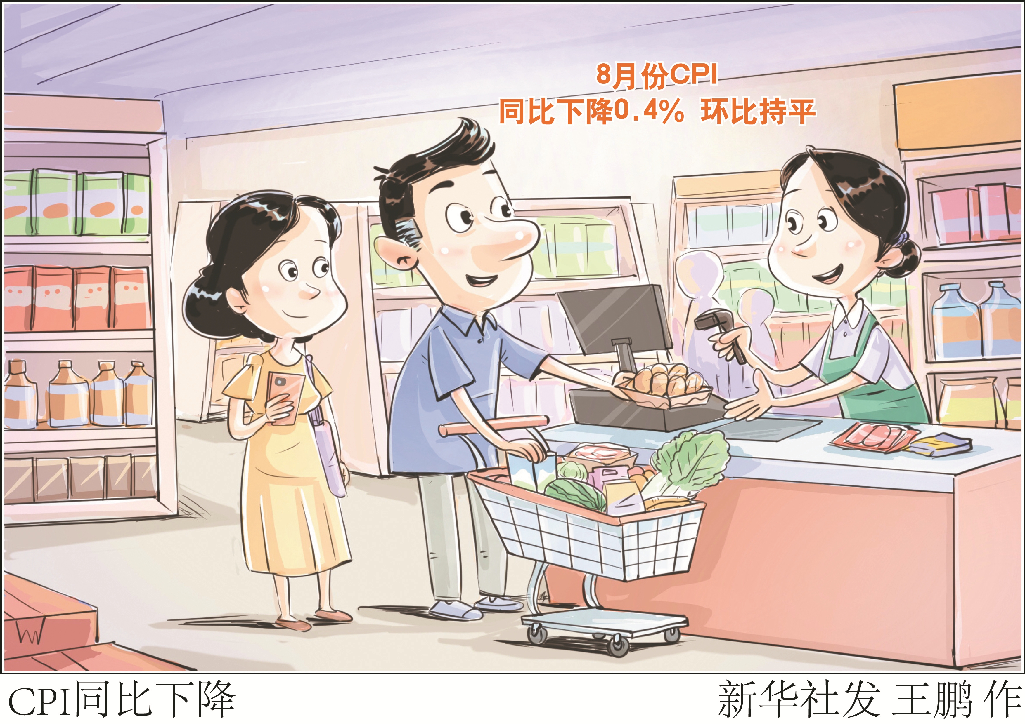 国家统计局10日数据显示,8月份,全国居民消费价格指数(CPI)环比持平,同比下降0.4%,扣除食品和能源价格的核心CPI同比上涨0.9%。从最新物价数据中,能读出哪些信息?