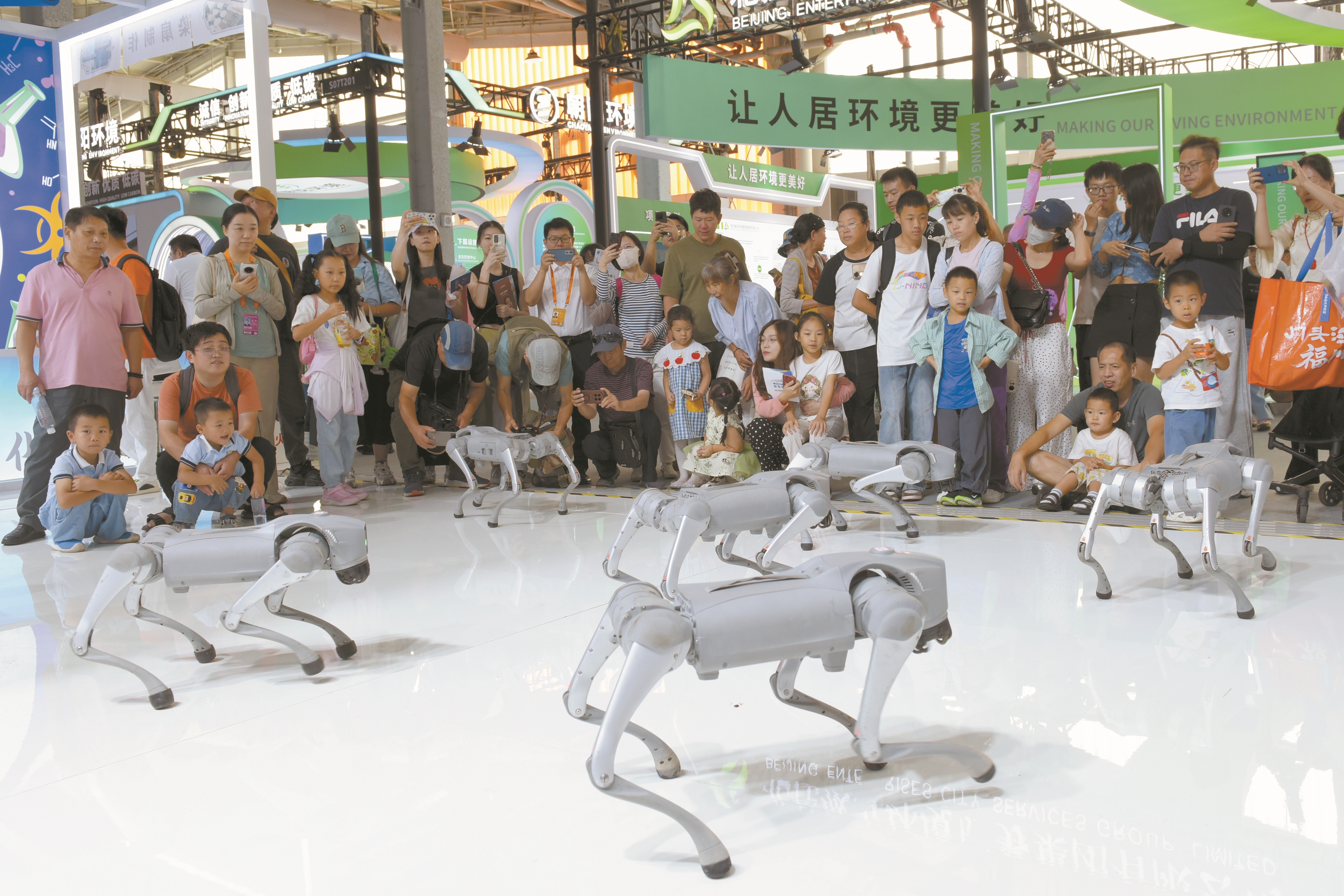 在服贸会现场,“京小健”“京小壮”两款产品作为“京娃”系列智能体代表,吸引了不少家长和学生现场体验咨询。