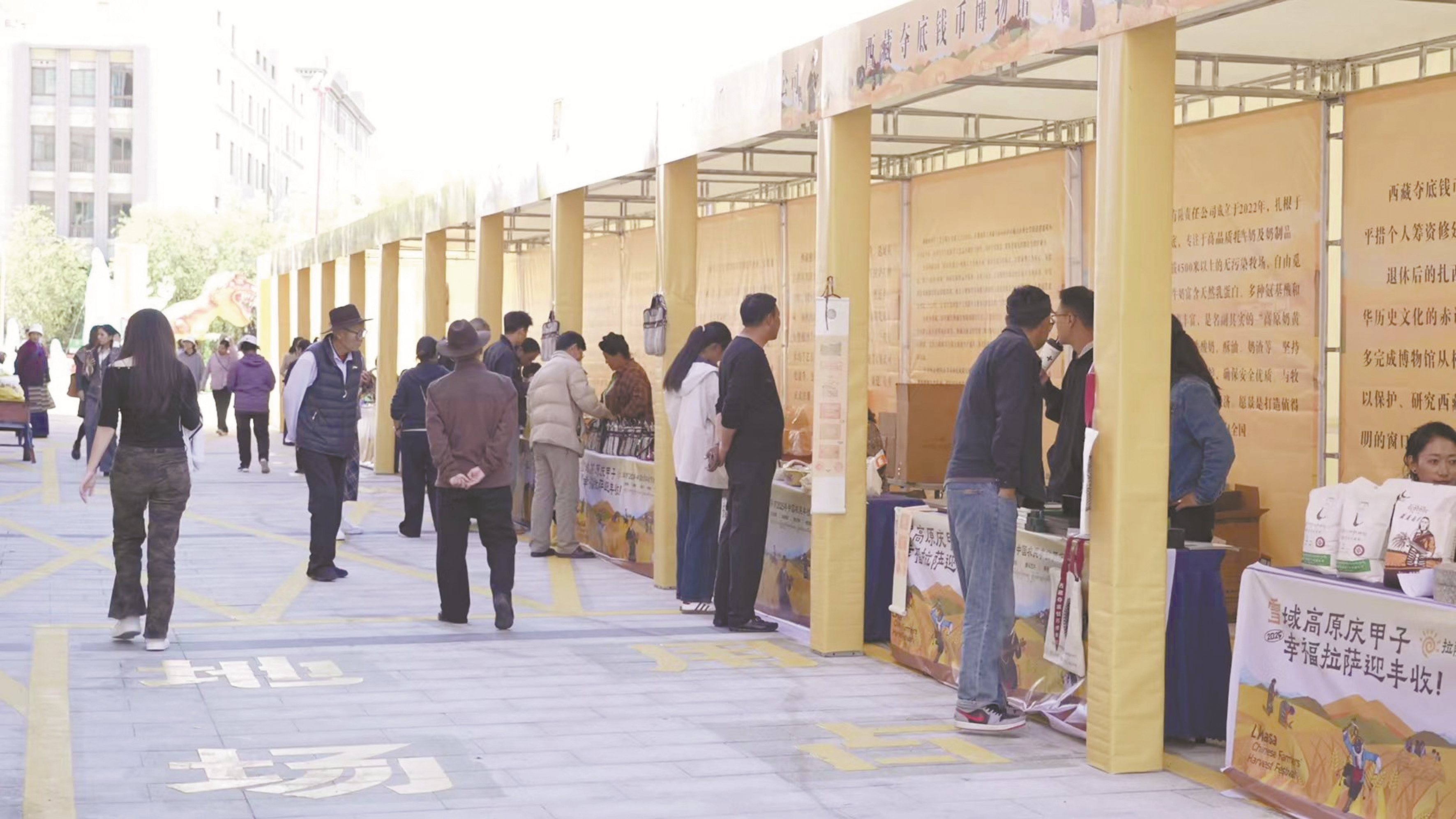 走进分会场,30个展位依次排开。来自拉萨市八县(区)的30家本土企业齐聚于此,带来了最具地域特色的“丰收答卷”:散发着青稞香的糌粑、保留着传统风味的奶渣等,还有印着富有民族元素图案的特色冰箱贴,以及各类精美手工艺品。部分展位还设置了非遗文化体验区,让市民在选购产品的同时,近距离感受传统技艺的魅力。鲜活的展品、浓厚的文化氛围,吸引了众多市民驻足参观、挑选采购。展销将持续至9月23日。?