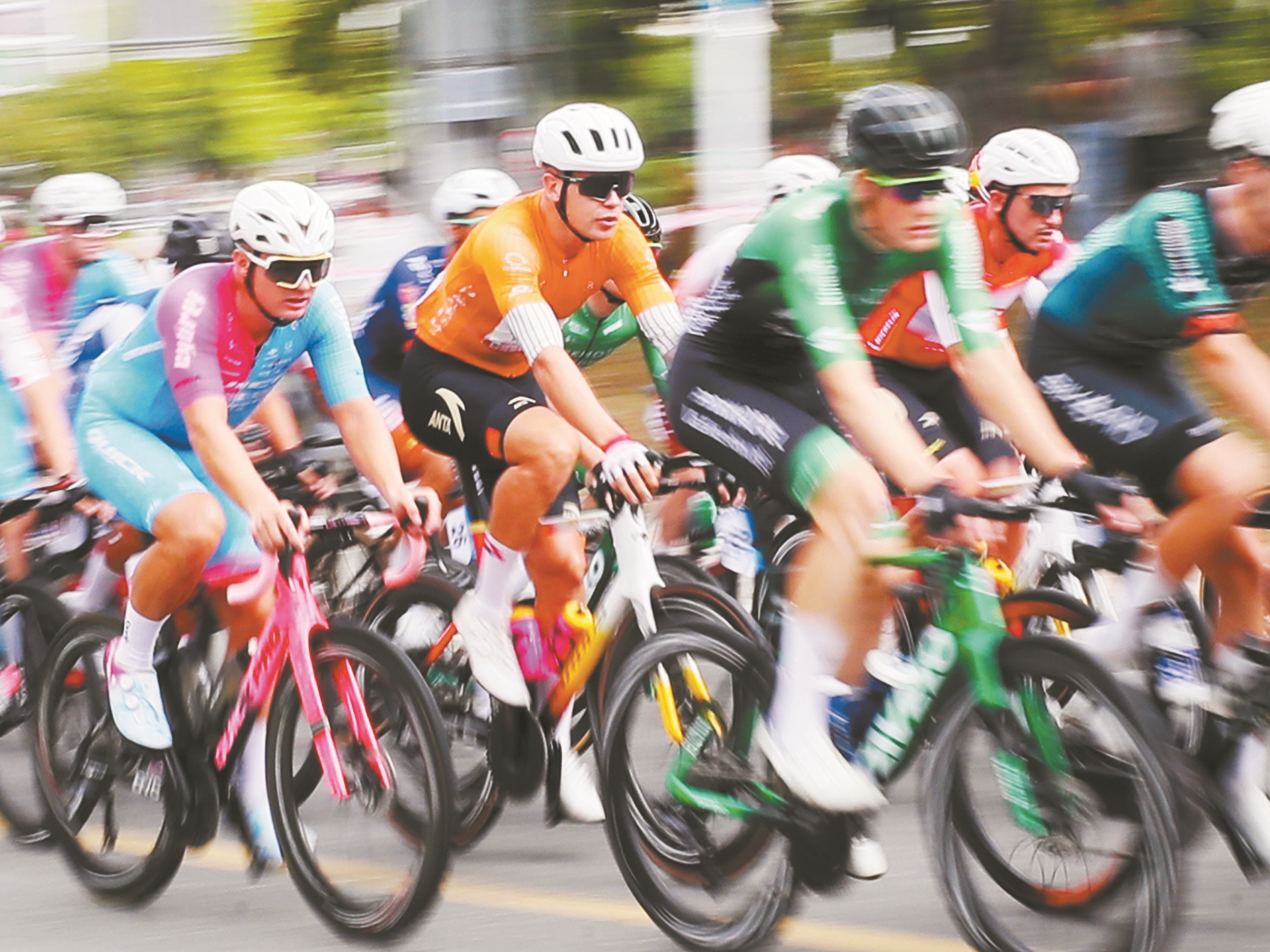 9月22日,第十三届环鄱阳湖国际自行车大赛第七赛段比赛在江西省抚州市资溪县举行。图为参赛选手在比赛中骑行。(新华社发)