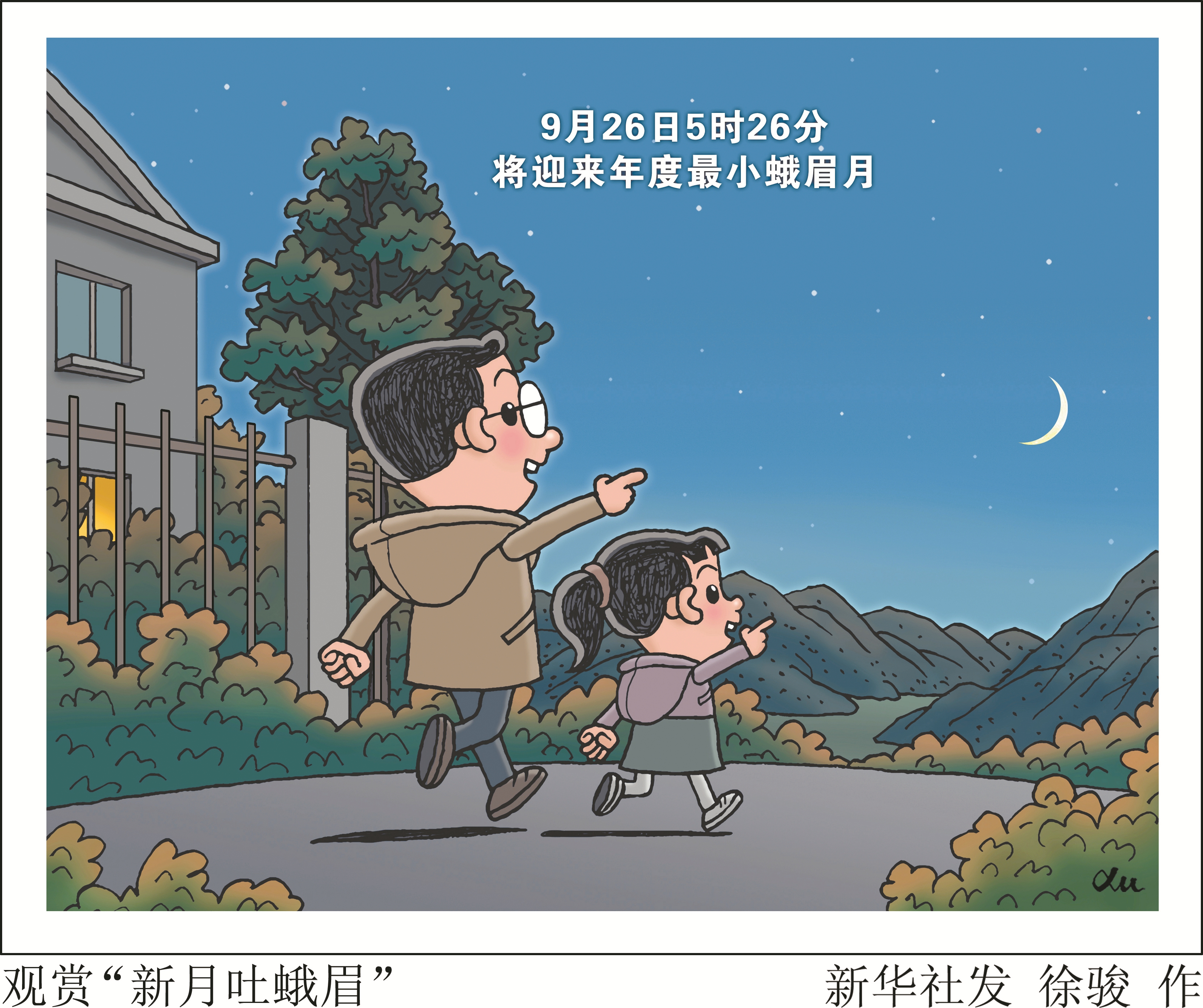 9月26日5时26分将迎来年度最小蛾眉月。天文科普专家表示,如果天气晴好,9月25日和26日傍晚日落后至月落前,感兴趣的公众可赏这轮“新月吐蛾眉”。