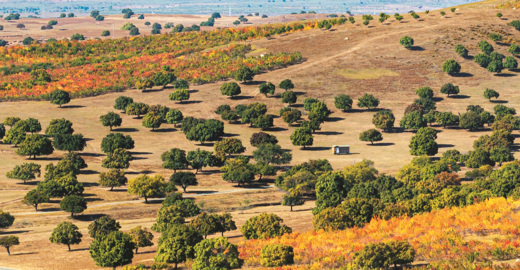 图片均为9月27日拍摄的兴安盟科尔沁右翼中旗五角枫生态旅游景区秋景(无人机照片)。