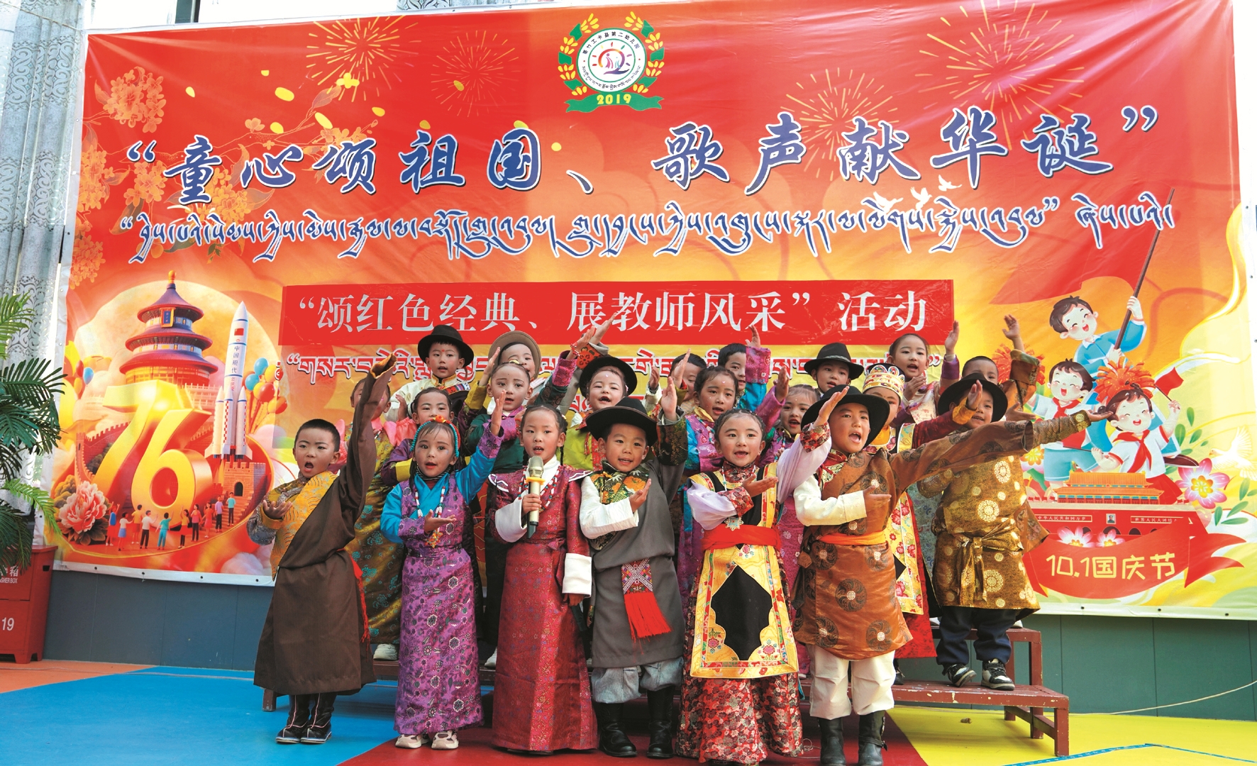 9月30日,墨竹工卡县第二幼儿园举办“童心颂祖国 歌声献华诞”红色歌曲暨教师器械操展示活动。