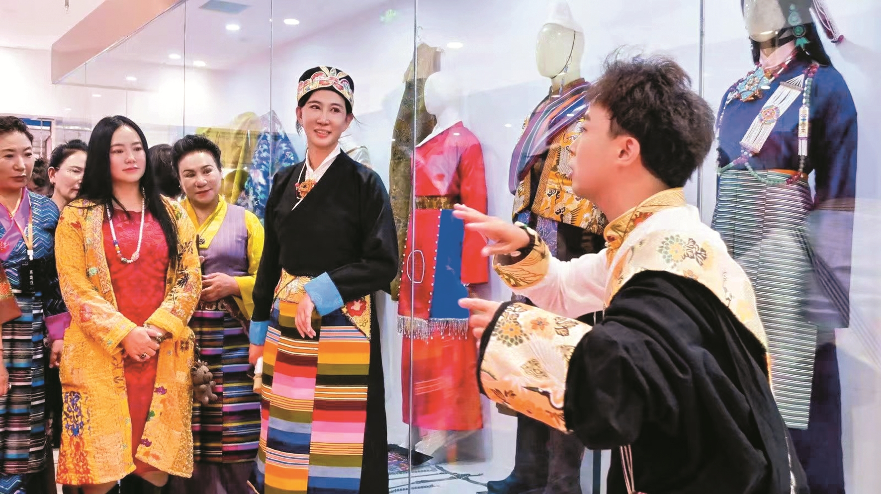 图为在“藏秀藏族服饰研究成果展”中,相关工作人员介绍传统服饰。拉萨融媒记者 杨 璐摄