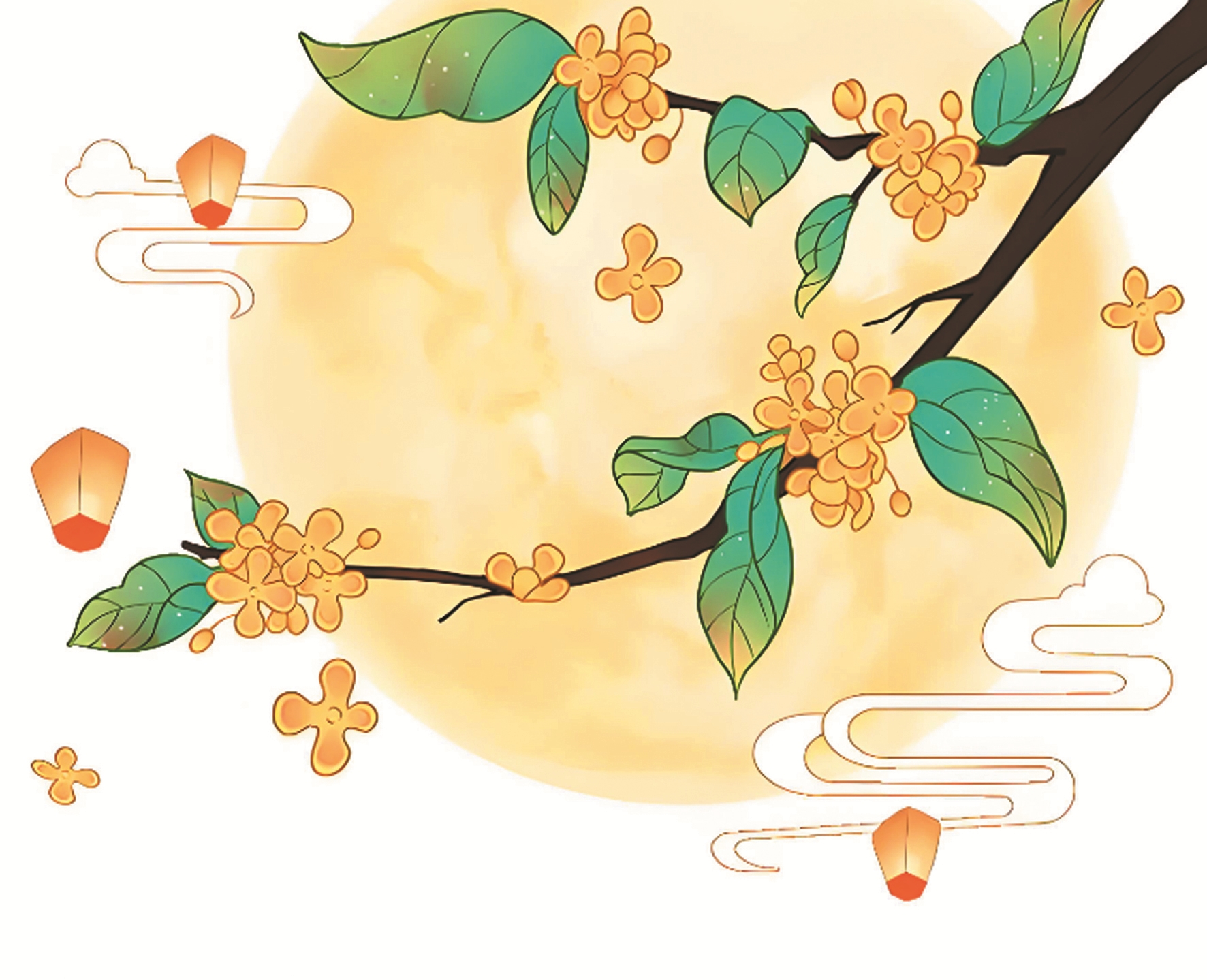 如果第一句还是通过视觉来写月夜的清静,次句“冷露无声湿桂花”就是通过听觉和嗅觉的感受紧承上句,写天气转凉、桂花怡人的情景。中秋之夜,万籁俱寂,仰望明月,有淡淡的桂花清香袭来。这里的桂花有双重含义,一是庭院里的桂花树,二是月宫中伴随嫦娥和吴刚的那棵神树。诗人巧妙地将传说和现实复合到一起,就像苏东坡词里写到的“何似在人间”。两位不同时代的作者,无论是从天上起笔,还是从庭院起笔,最终都能将人间与天上融合到一起。“今夜月明人尽望”和张九龄的“海上生明月,天涯共此时”是相似的境界,和“千里共婵娟”的“共”遥相呼应。细品之下,似乎“明月几时有”的千年之问和“秋思落谁家”的贴心之问,都在中秋月圆之夜得到了完美回答。