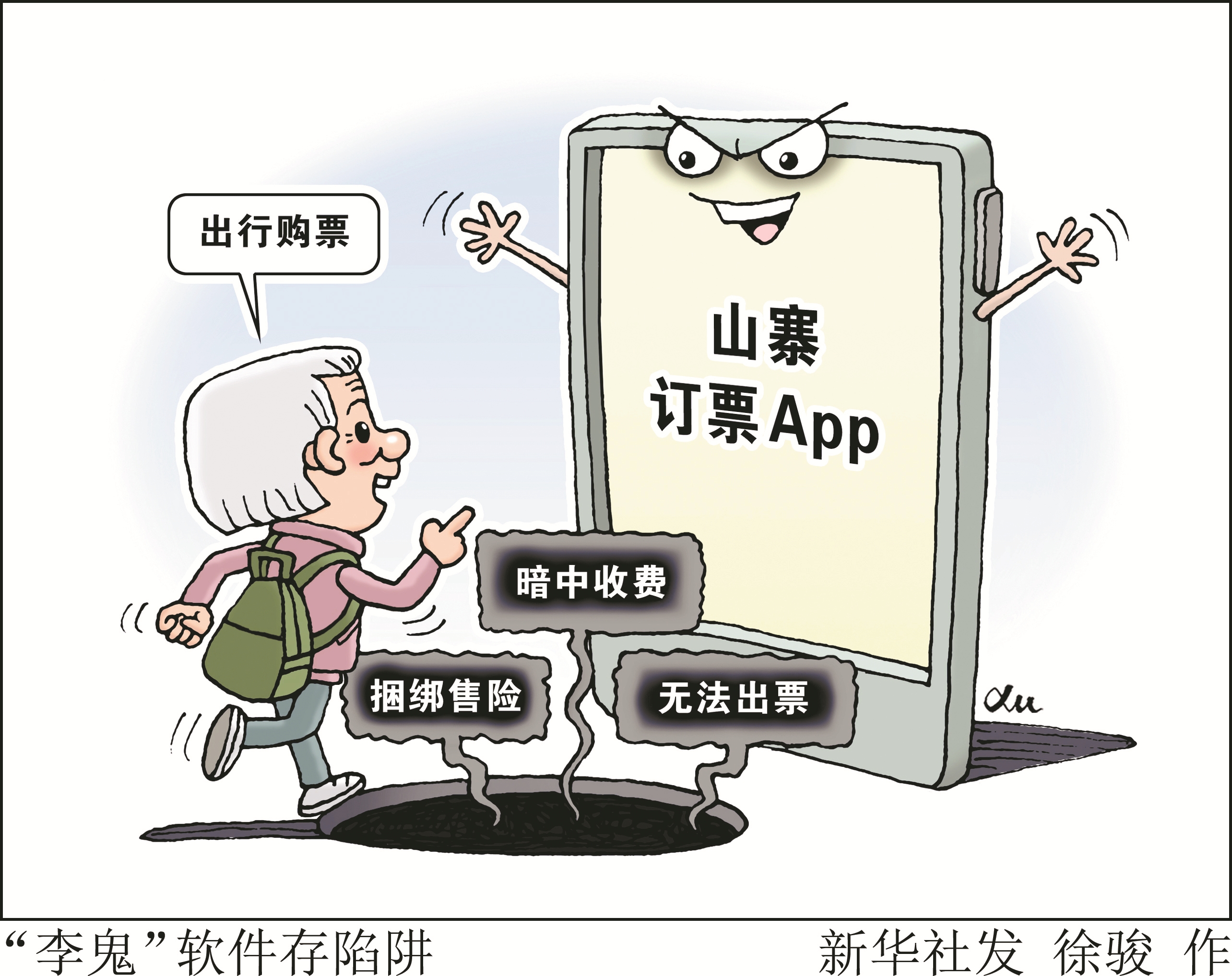天津的闫大妈刚退休,想多去看看世界,不料在出行购票第一步就遭遇了陷阱。“我下载了应用商店推荐的第一个买票软件,票价跟女儿查询的并不一样。”闫大妈说,“我费了好大劲儿才发现其中的猫腻,原来下载的不是正版App,而且这个软件还自动勾选了保险费用。”