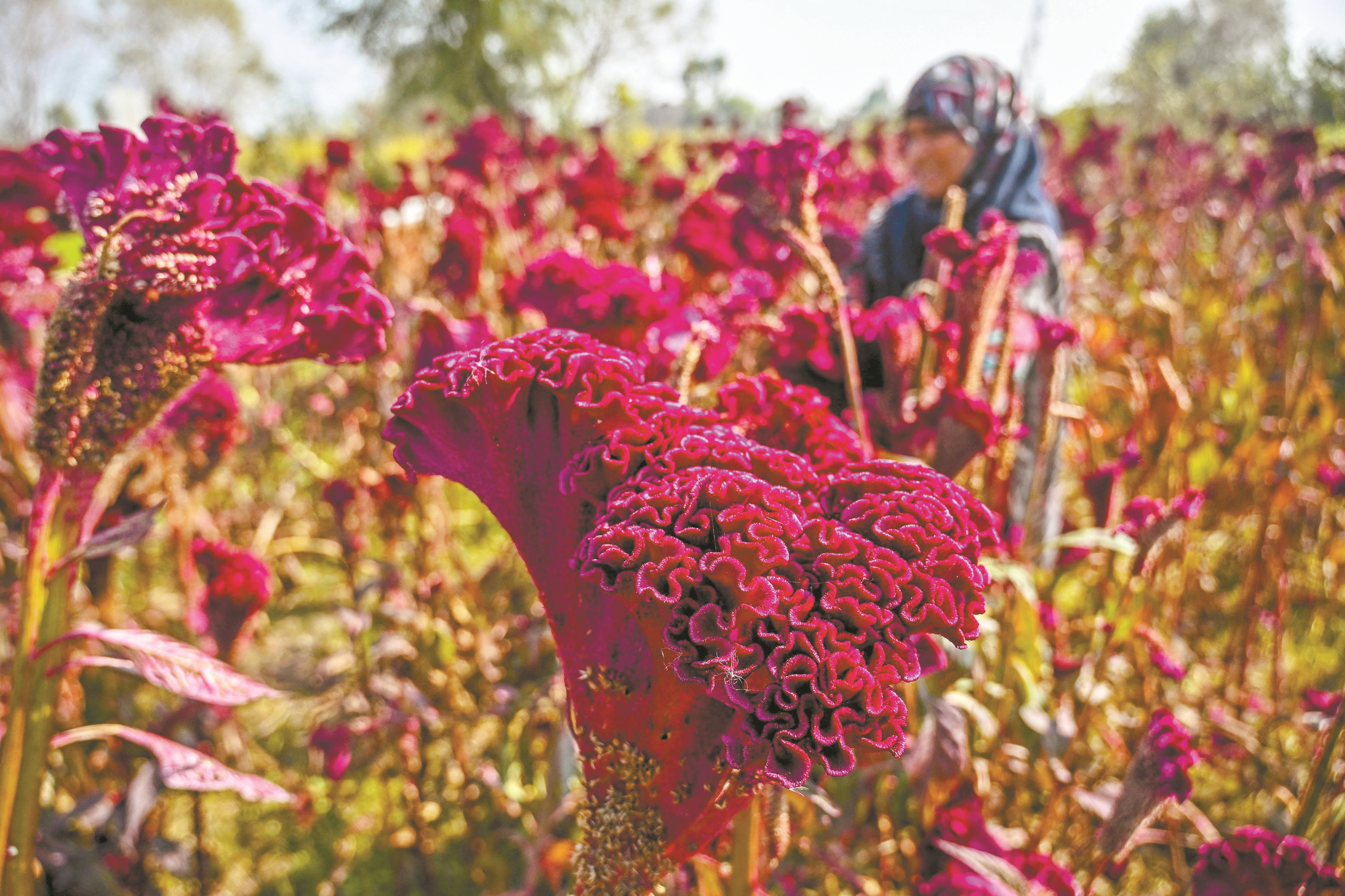 这是10月14日在印控克什米尔地区斯利那加拍摄的鸡冠花。