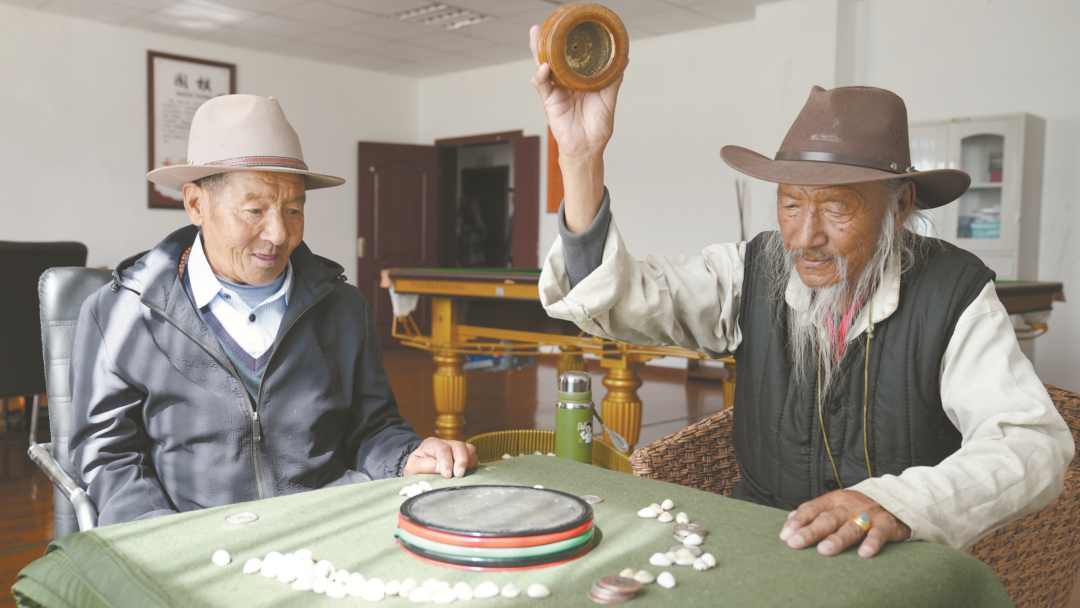 上午10时许,活动室里传来欢快的音乐声,67岁的顿珠仓觉正带领老人们跳锅庄舞。她兴奋地说:“在这里,我们不仅吃得放心,活得开心,更重要的是找到了晚年的价值。”下午的自由活动时间,老人们或打台球,或玩骰子,或做手工,大家脸上都洋溢着幸福的笑容。