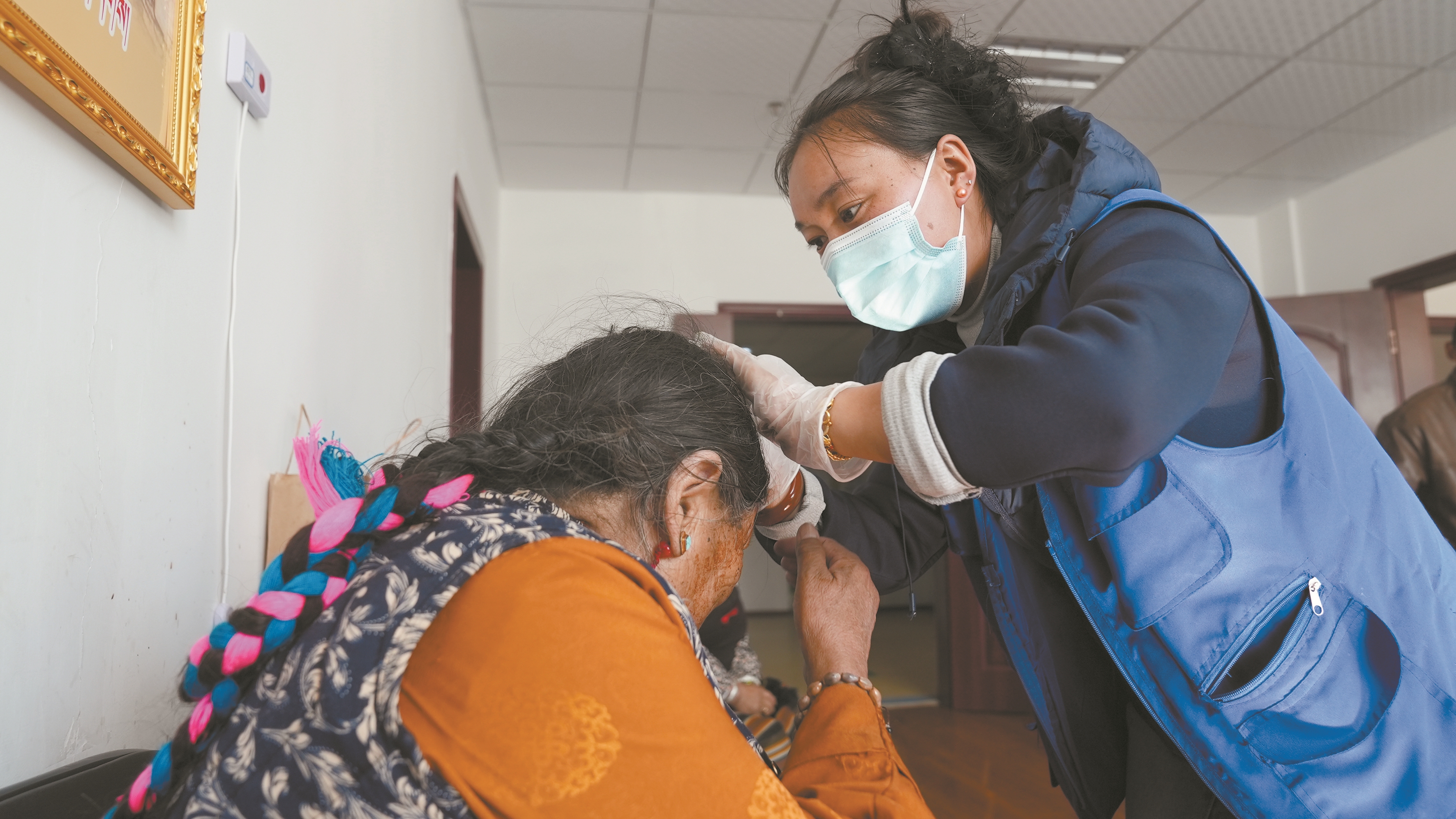 图①②为墨竹工卡县老年人日间照料中心工作人员为老人们提供助医、助洁服务;图③为老人们在日间照料中心内玩骰子。拉萨融媒记者 莫瑞英摄