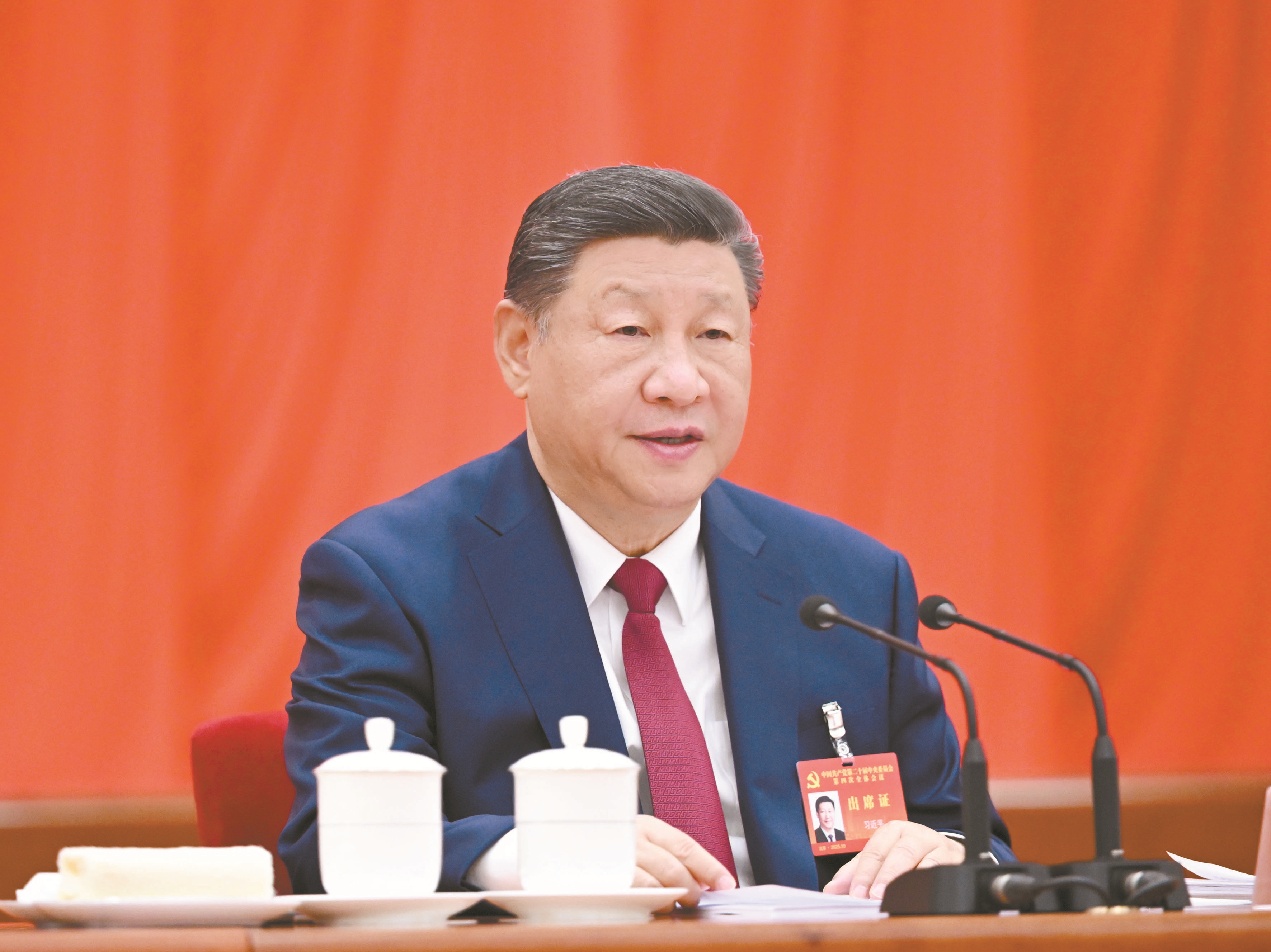 中国共产党第二十届中央委员会第四次全体会议,于2025年10月20日至23日在北京举行。中央委员会总书记习近平作重要讲话。 新华社记者 谢环驰摄