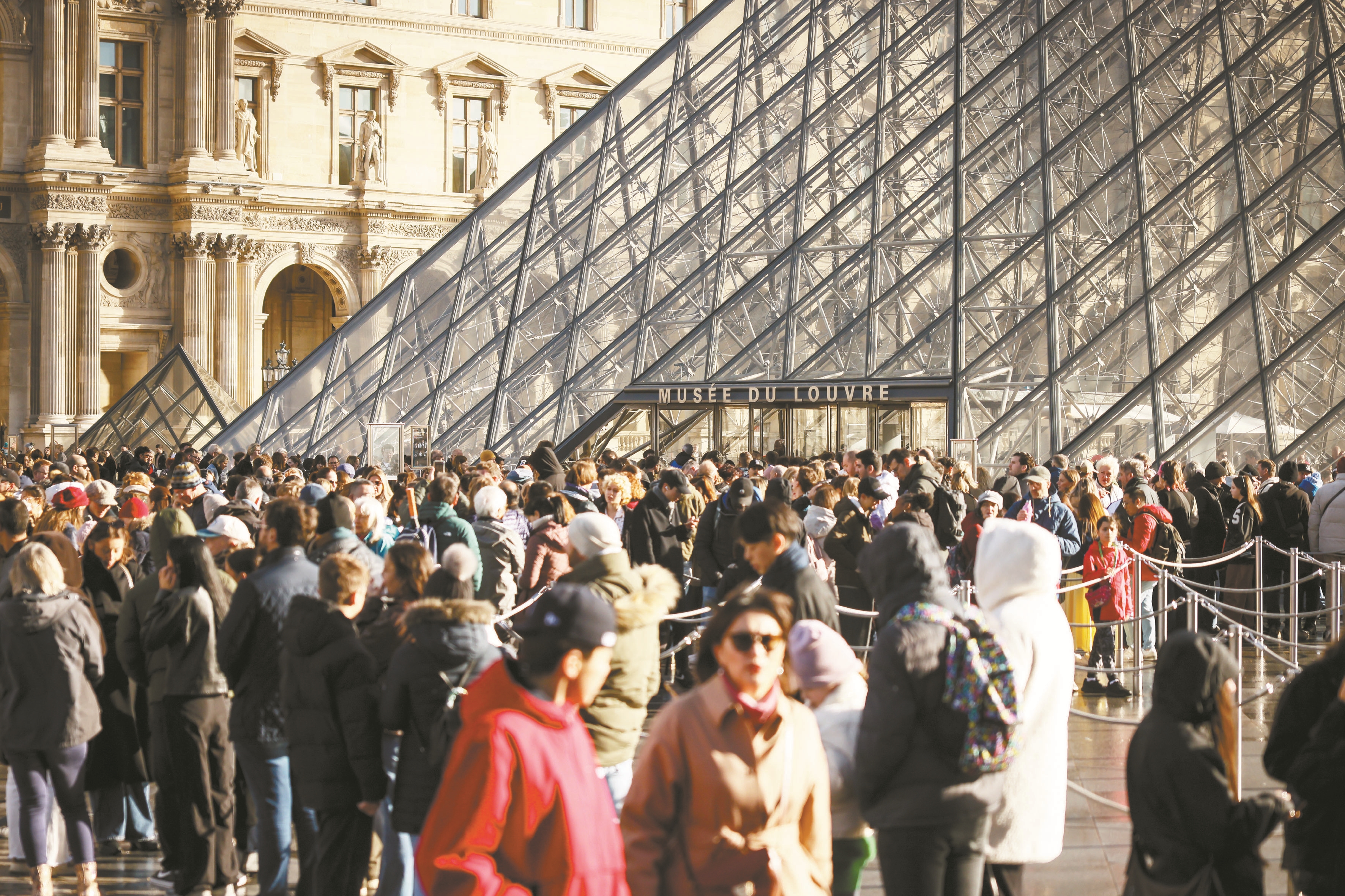 图为10月26日,大量游客排队进入法国巴黎卢浮宫博物馆。