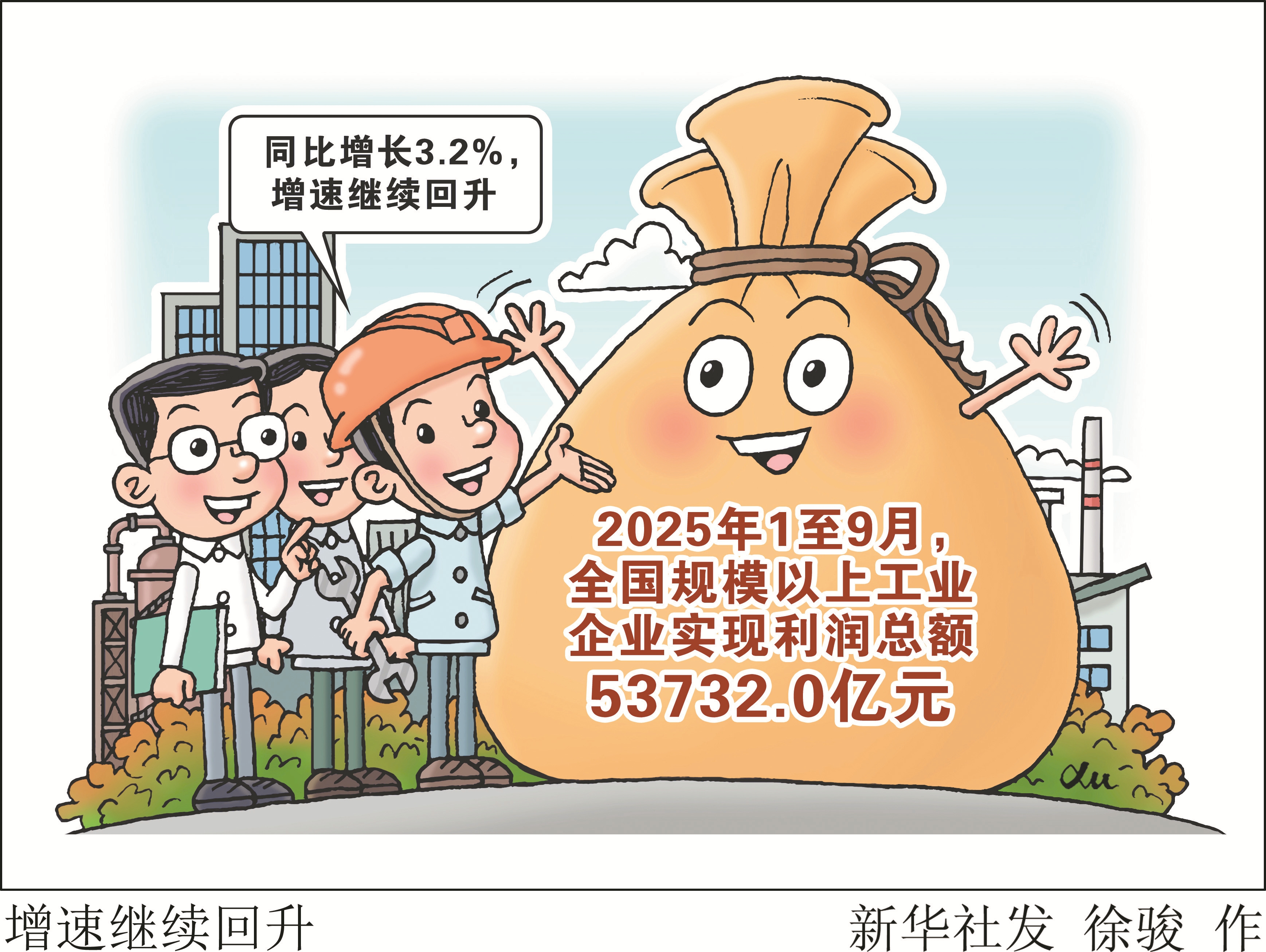 新华社北京10月27日电(记者王雨萧)国家统计局27日发布数据显示,1至9月,全国规模以上工业企业实现利润总额53732.0亿元,同比增长3.2%,增速继续回升。