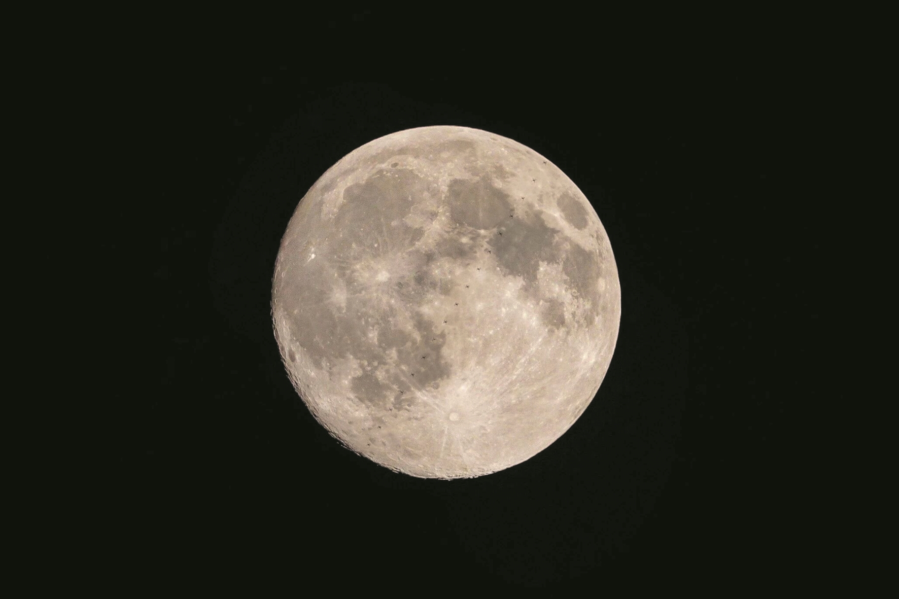 中国空间站飞过圆月