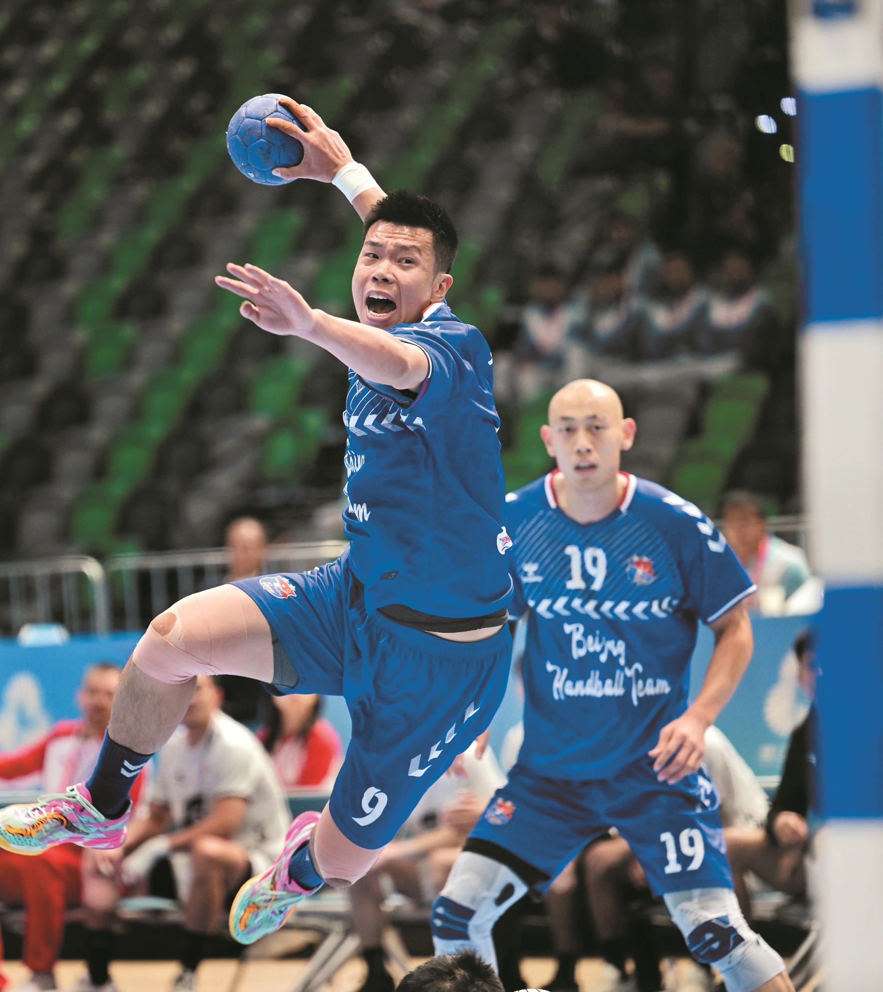 11月5日,在香港启德体艺馆进行的第十五届全国运动会男子手球预赛A组比赛中,上海队28比18战胜澳门队。