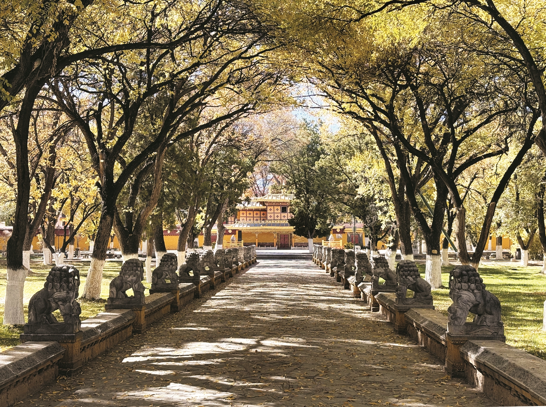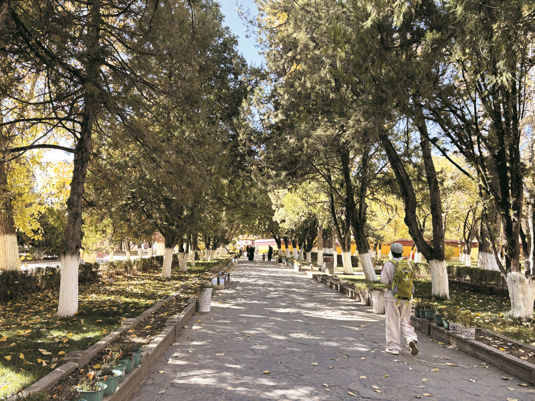 作为西藏规模最大的园林,罗布林卡的冬日风光一绝。步入景区,古老的树木缀满金黄树叶。游人或拍照打卡,或轻声交谈,身影与园林景致融为一体,构成一幅治愈心灵的暖色调画卷。这份冬日限定美景,吸引着八方游客纷至沓来。