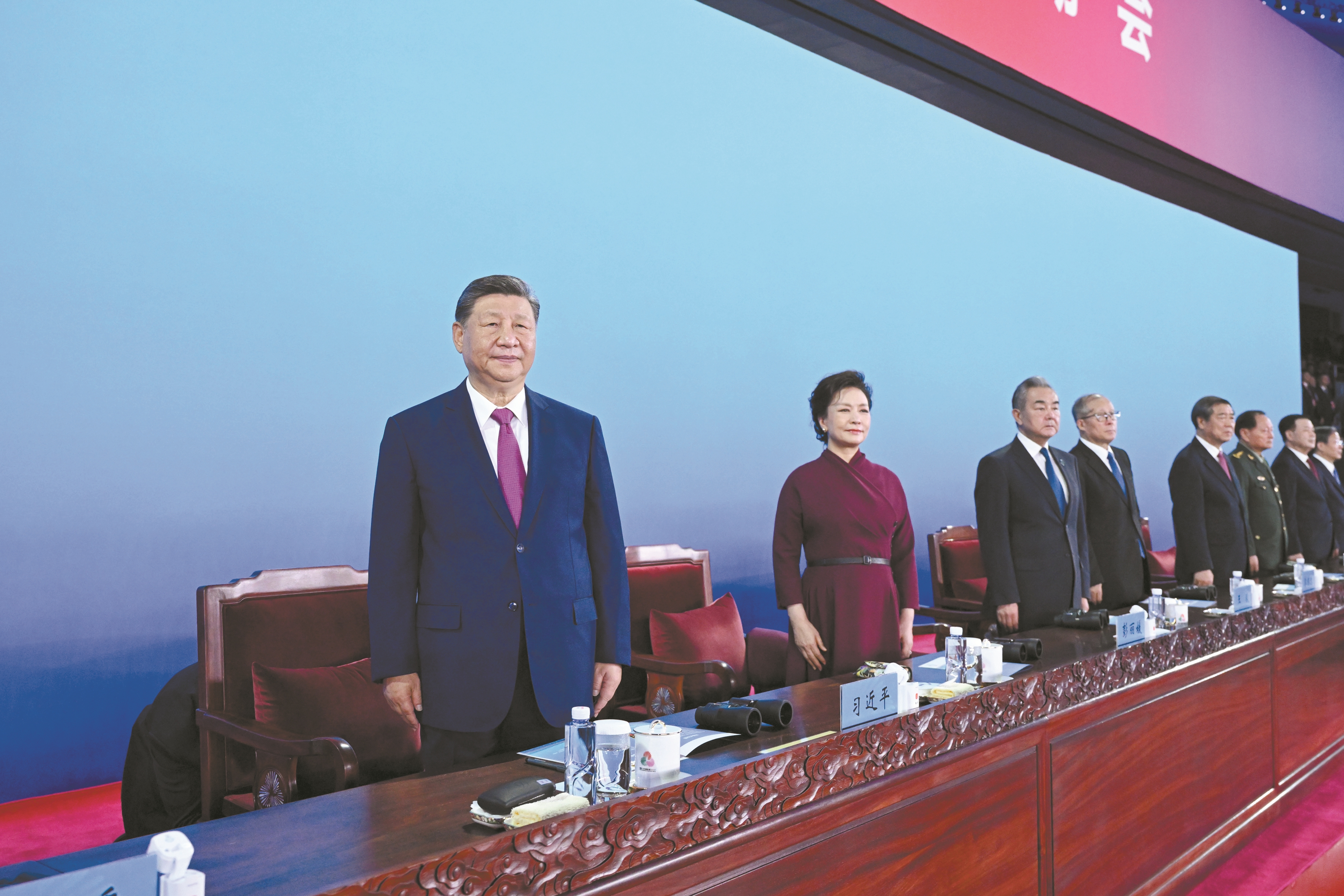 入场仪式完毕,全场起立,高唱中华人民共和国国歌。(下转第四版)