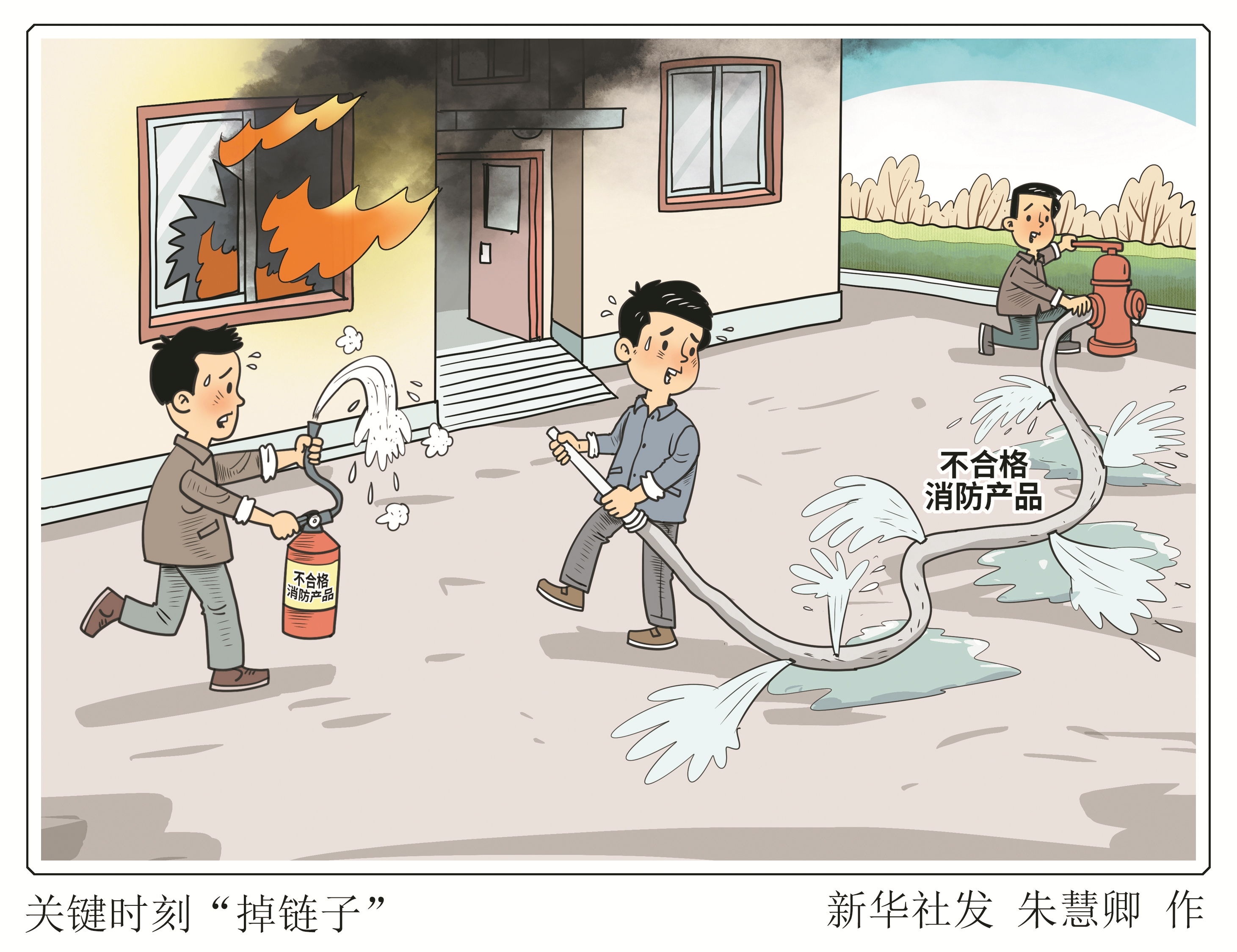 灭火器灭不了火苗、消防呼吸器过滤不了烟气毒性、消防水带一进水就破裂……不合格的消防器材不仅可能在关键时刻“掉链子”,本身也可能成为危险源。