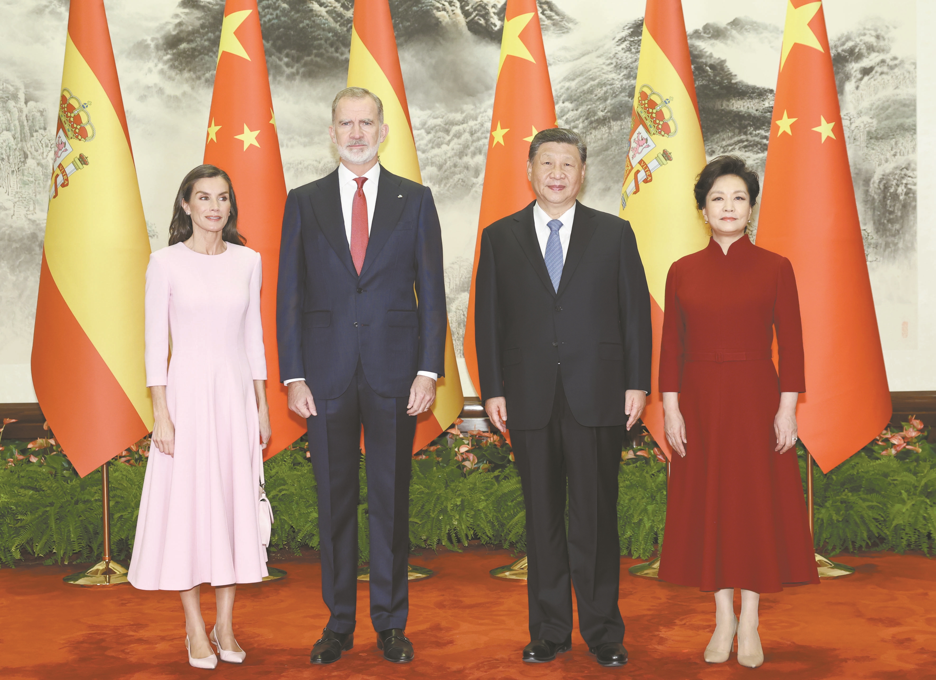 习近平欢迎费利佩六世国王访华,指出中国和西班牙都有深厚的历史文化底蕴。建交50多年来,两国坚持从战略高度和长远角度看待和发展双边关系,相互尊重、相互支持、相互成就,树立了不同历史文化、不同社会制度国家友好相处、共谋发展的典范,也为推动全球开放合作、维护国际公平正义发挥了重要作用。西班牙王室为中西关系发展作出了突出贡献。在两国迎来建立全面战略伙伴关系20周年之际,费利佩六世国王对中国进行国事访问,对推动两国友好合作不断向前发展具有重要意义。