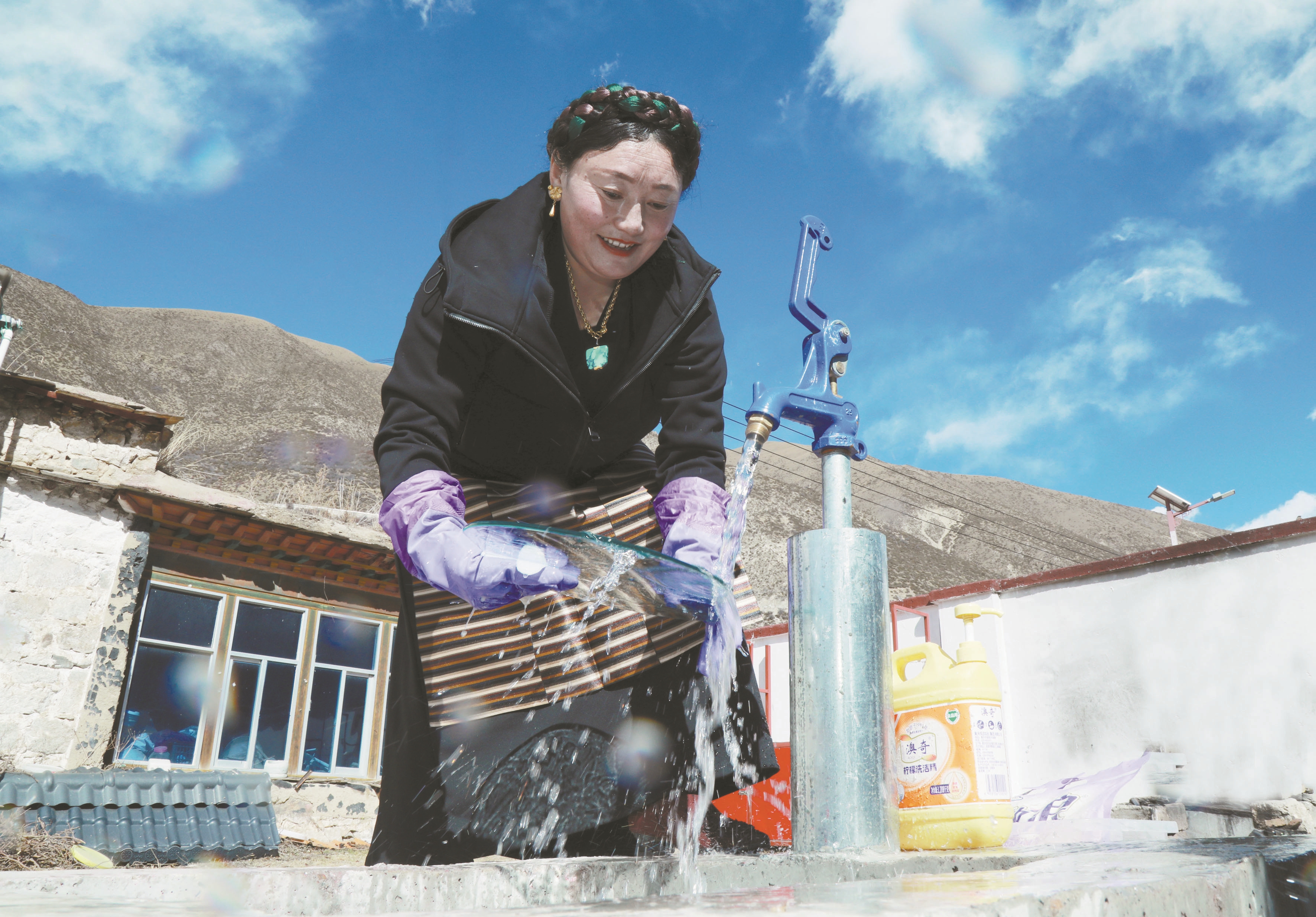 村民曲央站在自家厨房,拧开水龙头,清澈的水流“哗哗”涌出。她一边冲洗碗筷,一边笑着说:“以前用水太愁人了!水说停就停,洗碗得攒着水,给牦牛喂水也得提前存。遇上雨天,洪水夹杂着泥沙,水根本没法用。现在好了,新自来水水压足、水质干净,不管是做饭还是喂牛,随时都能用,再也不用为喝水、用水犯难了。”