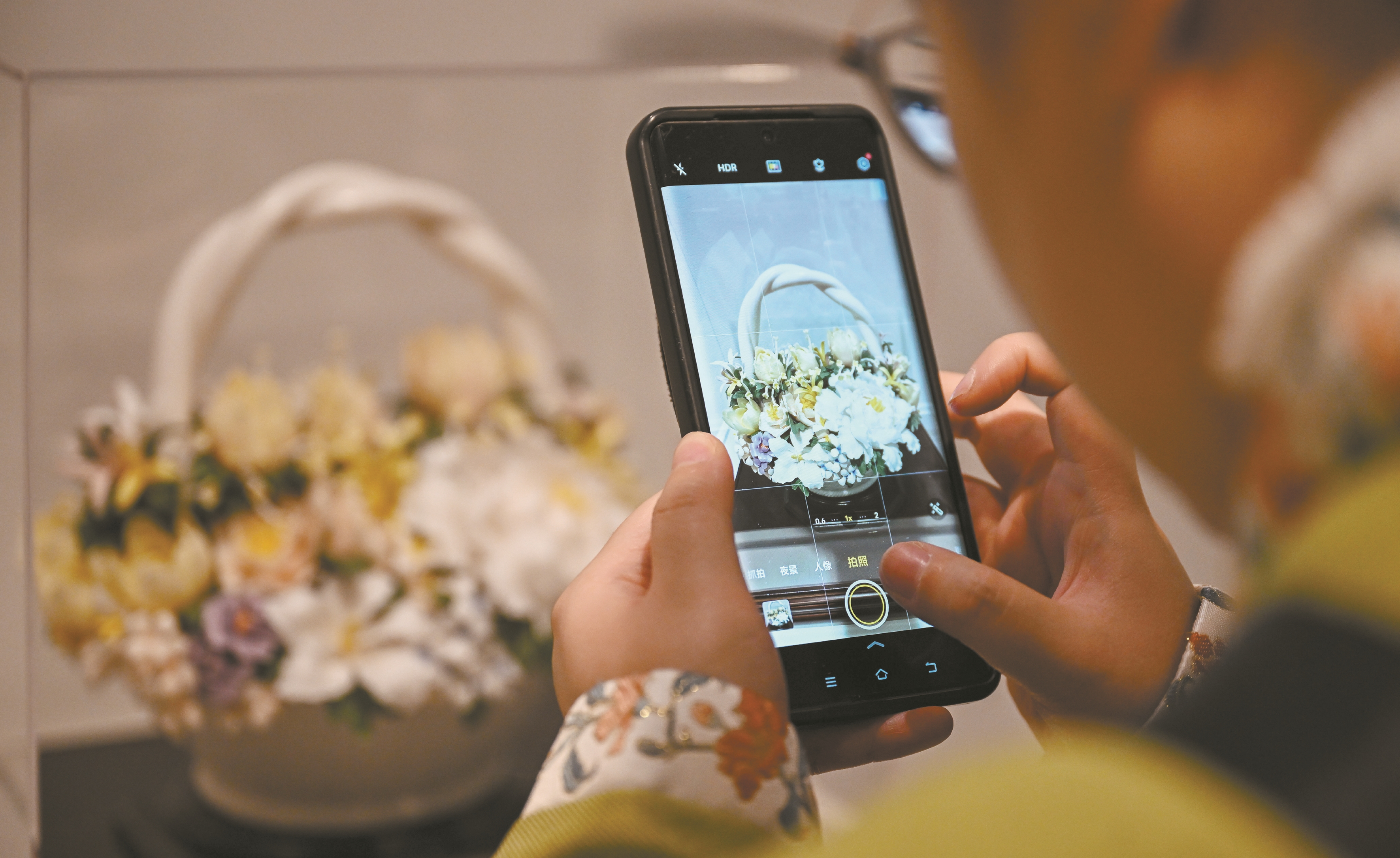 这是当日,观众在西班牙塔拉韦拉文化中心拍摄白瓷展品。