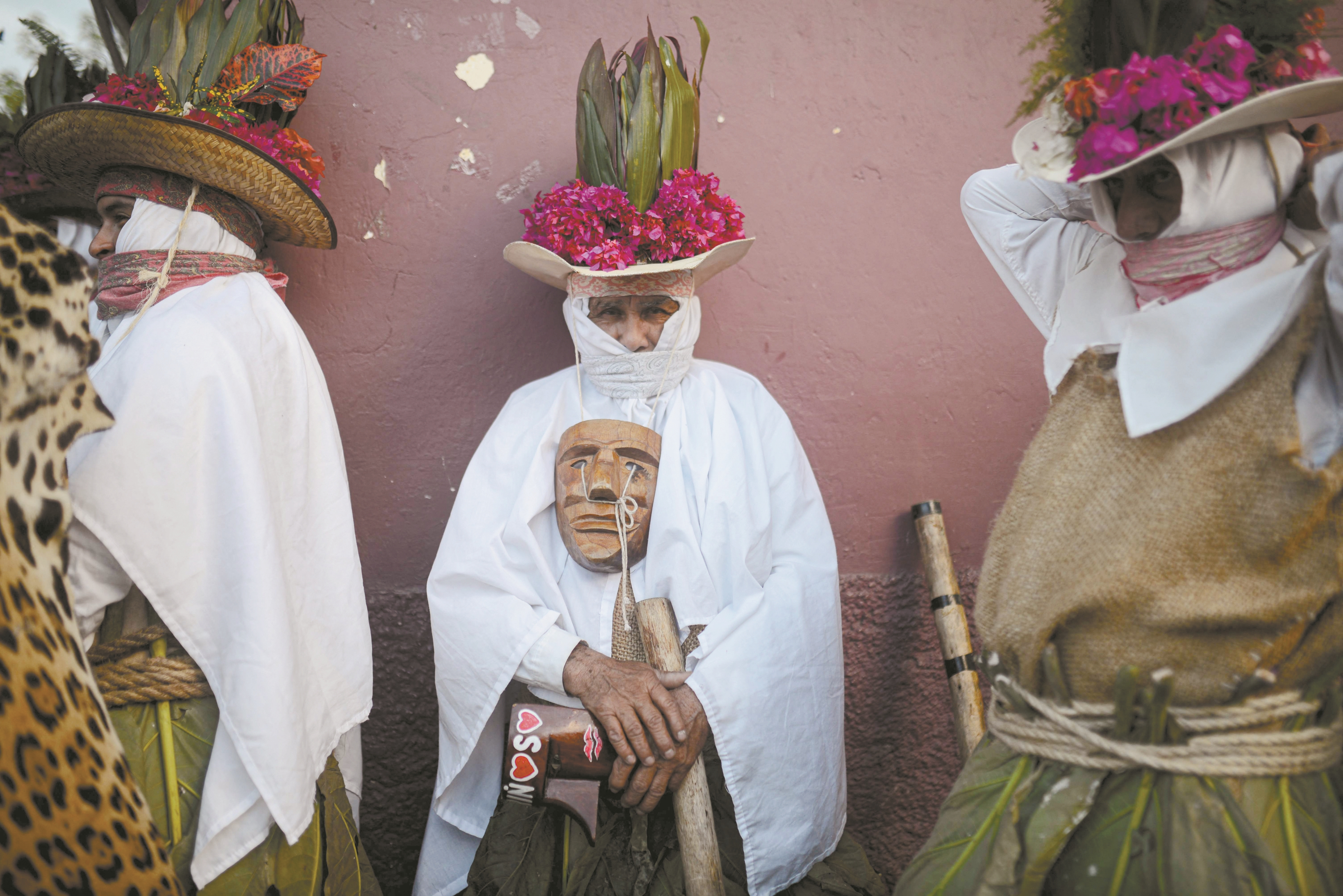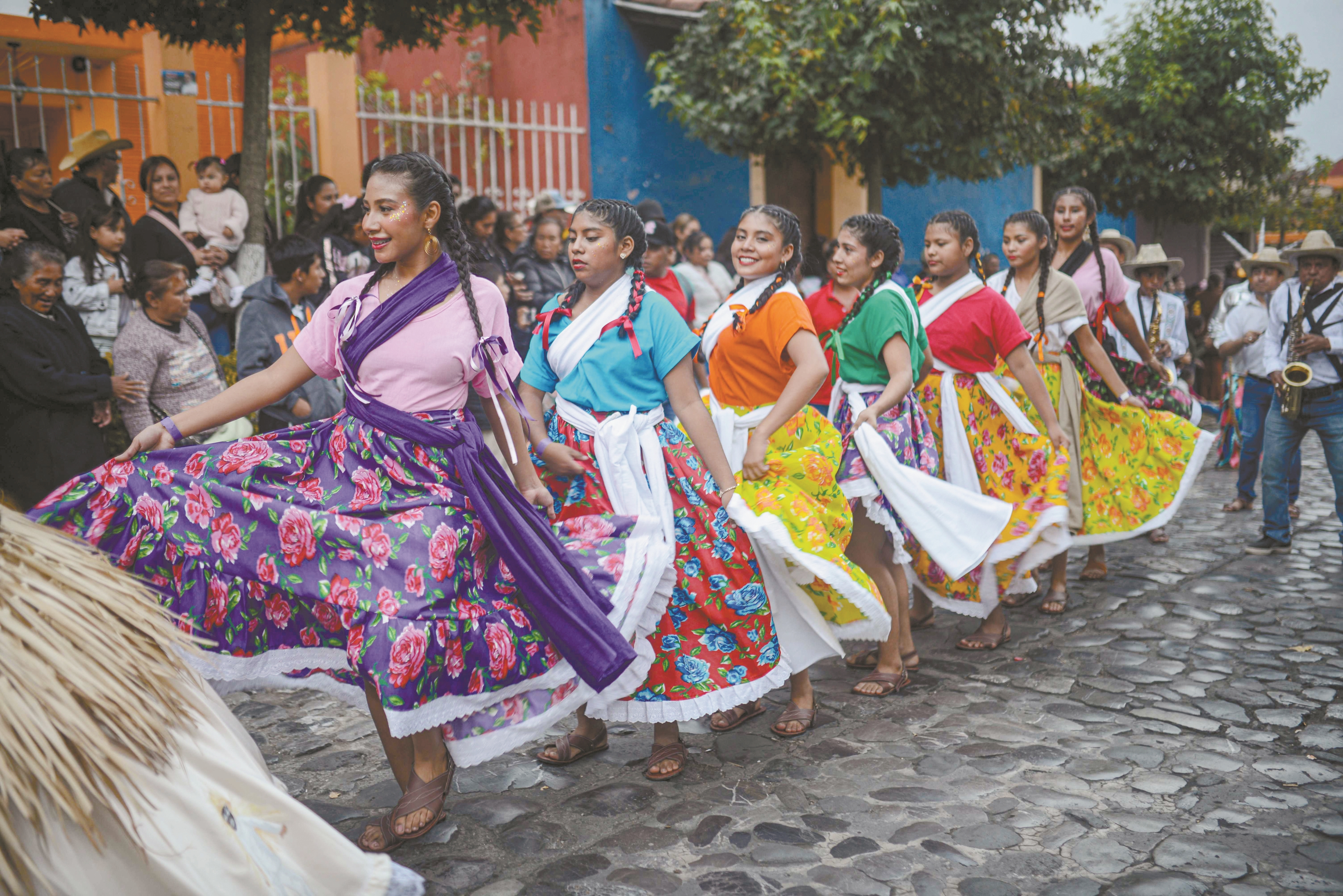 墨西哥的面具舞是一种具有浓郁当地特色的传统舞蹈。 ▲这是11月14日,在墨西哥科斯科马特佩克-德布拉沃举行的全国面具舞节上,女孩们表演舞蹈。(新华社发)
