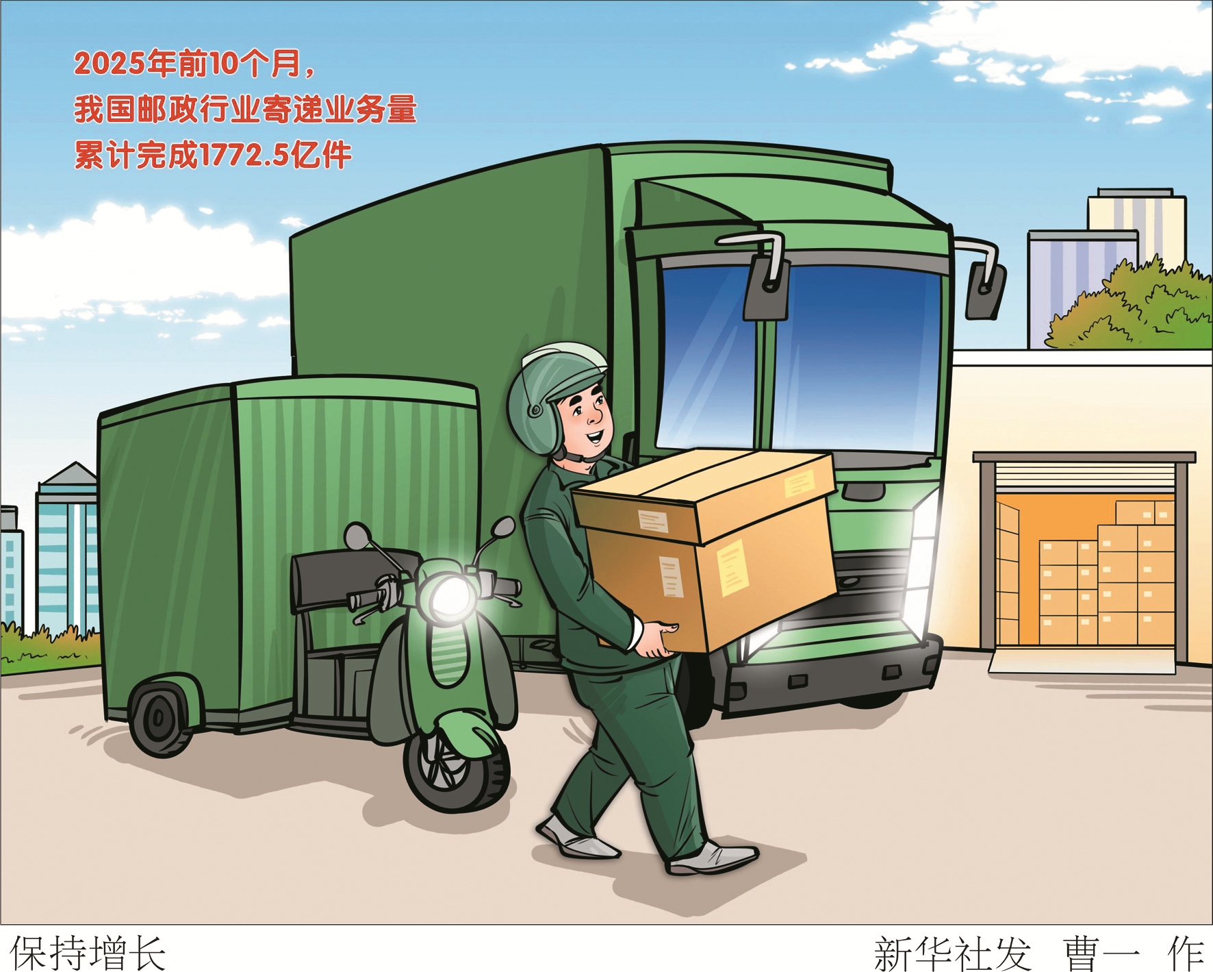 记者11月18日从国家邮政局获悉,前10个月,我国邮政行业寄递业务量累计完成1772.5亿件,同比增长14%。其中,快递业务量累计完成1626.8亿件,同比增长16.1%。