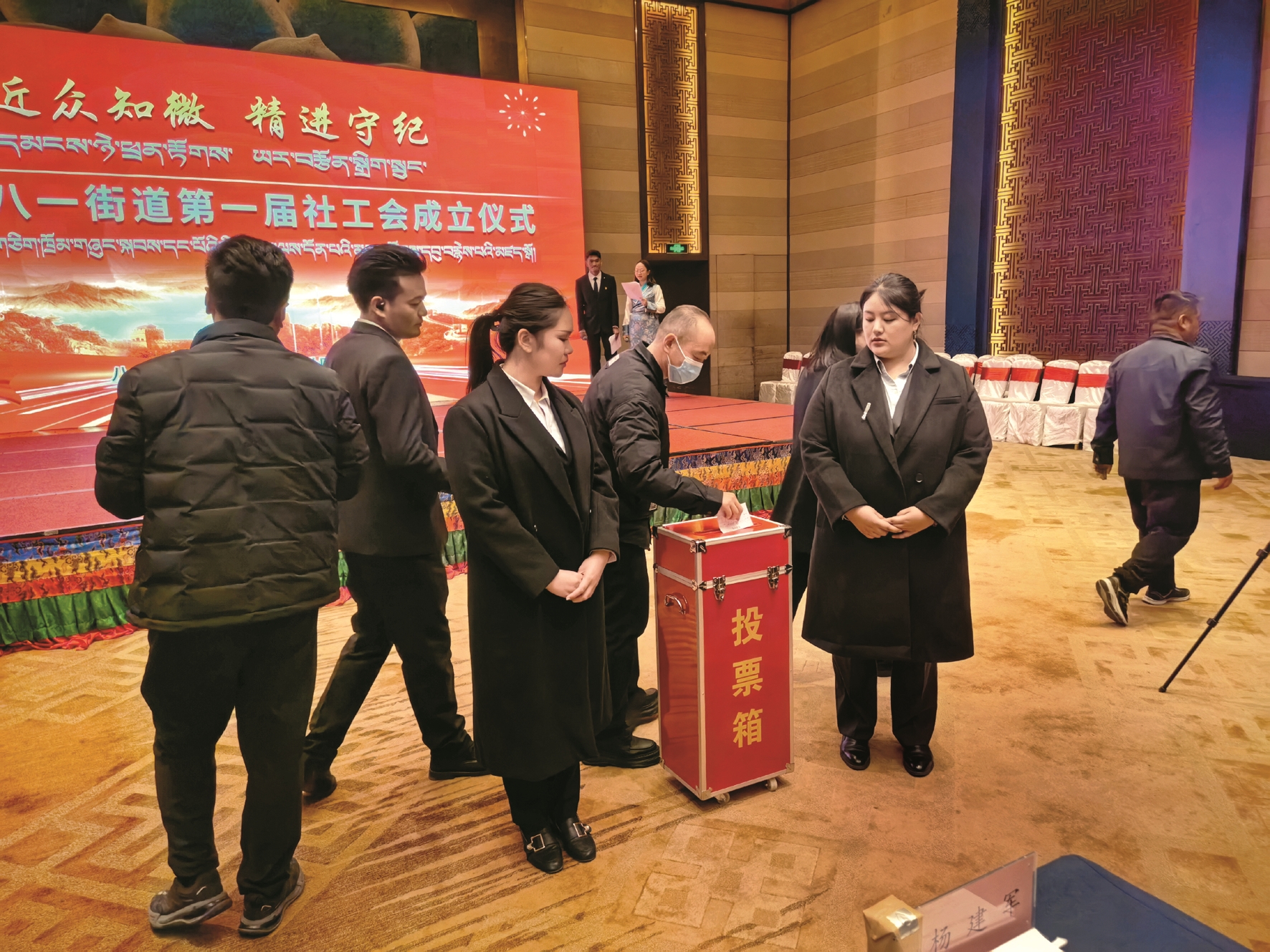 图为活动现场,参会人员投票选举八一街道社会工作者协会第一届委员会委员。拉萨融媒记者 次仁卓玛摄