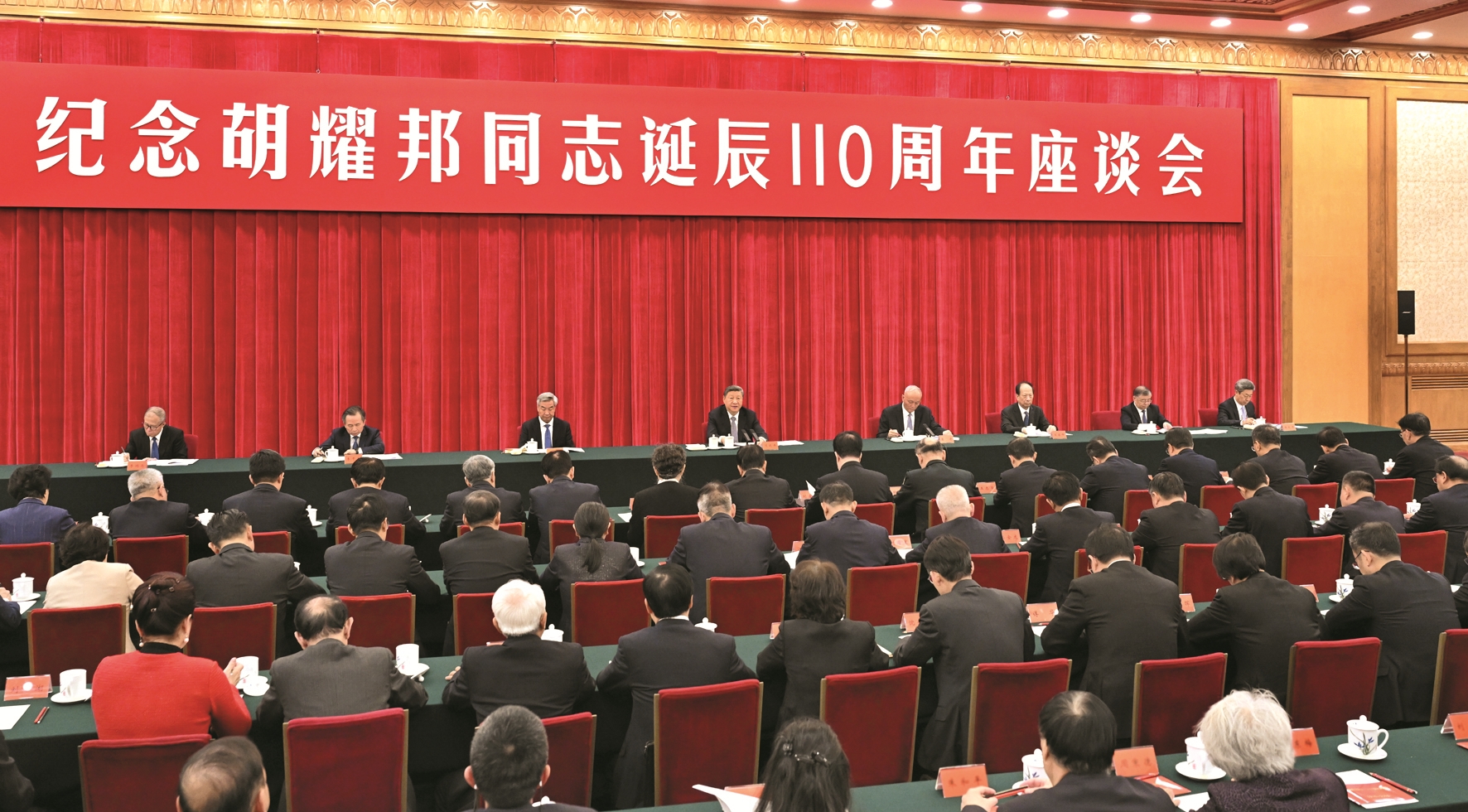 新华社北京11月20日电 中共中央20日上午在人民大会堂举行座谈会,纪念胡耀邦同志诞辰110周年。中共中央总书记、国家主席、中央军委主席习近平发表重要讲话强调,要认真学习胡耀邦同志的崇高精神风范和优良作风,不忘初心、牢记使命,坚定历史自信,增强历史主动,以一往无前的奋斗姿态扎实推进各项事业。
