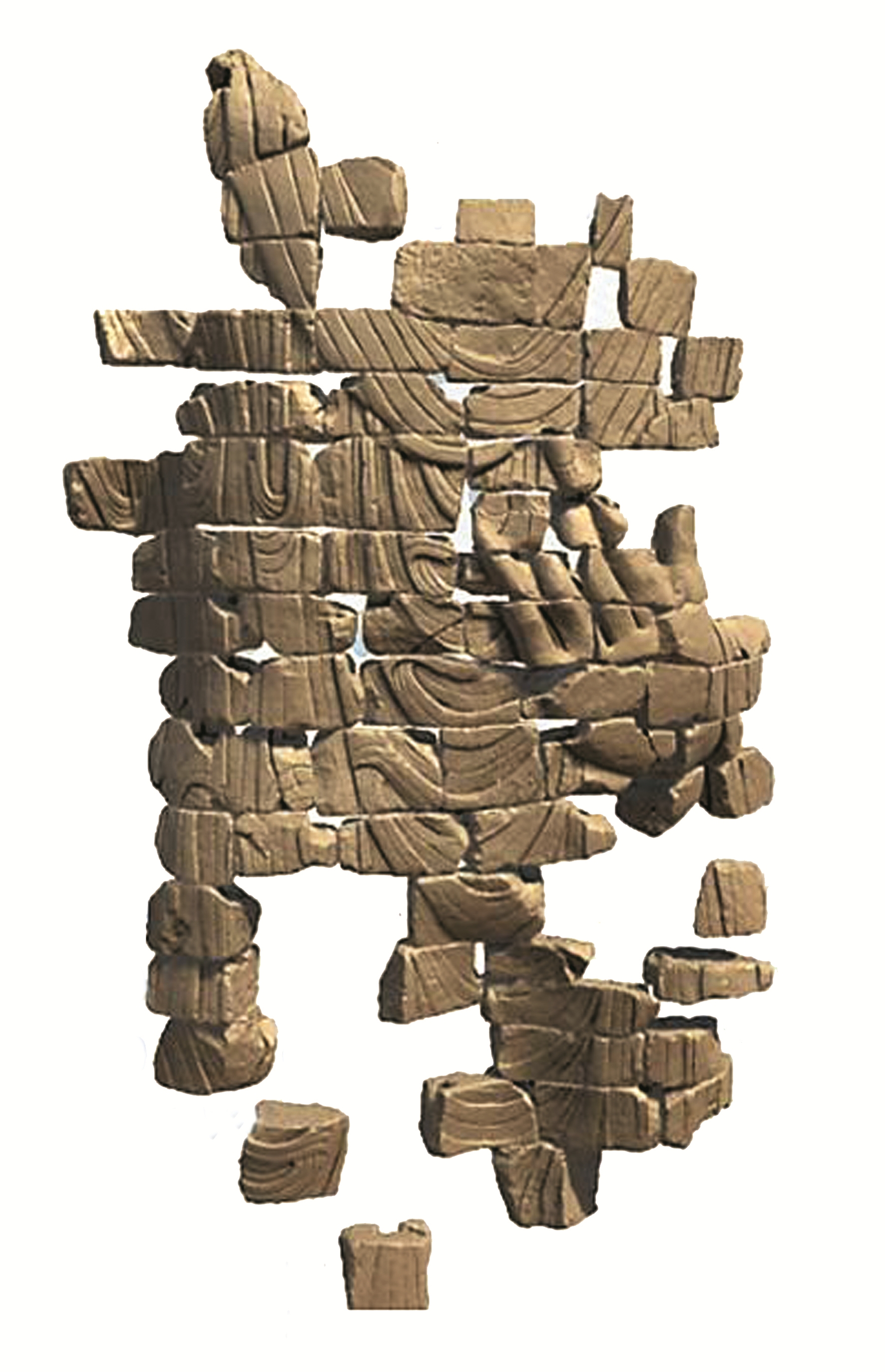 图③:云冈石窟第20窟西立佛造像残块拼对成功后的效果图。