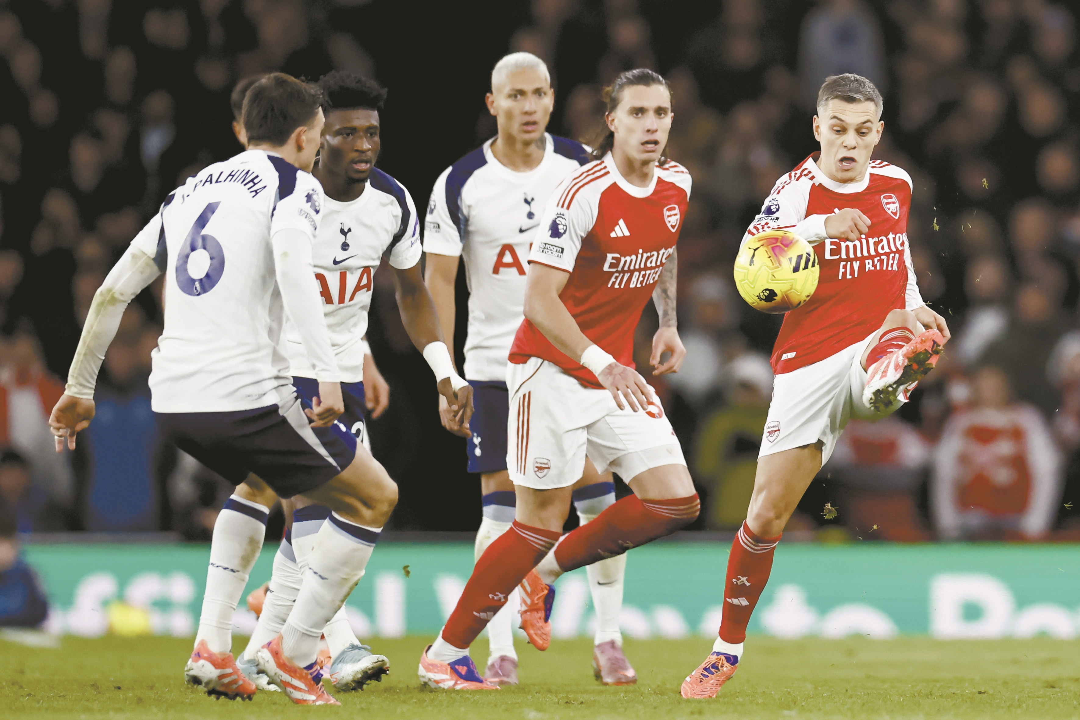 新华社伦敦11月23日电(记者马邦杰)英超“领头羊”阿森纳23日在主场举行的“北伦敦德比”中4:1击败托特纳姆热刺,将积分领先优势扩大到6分,其中中场球员埃泽独进三球。
