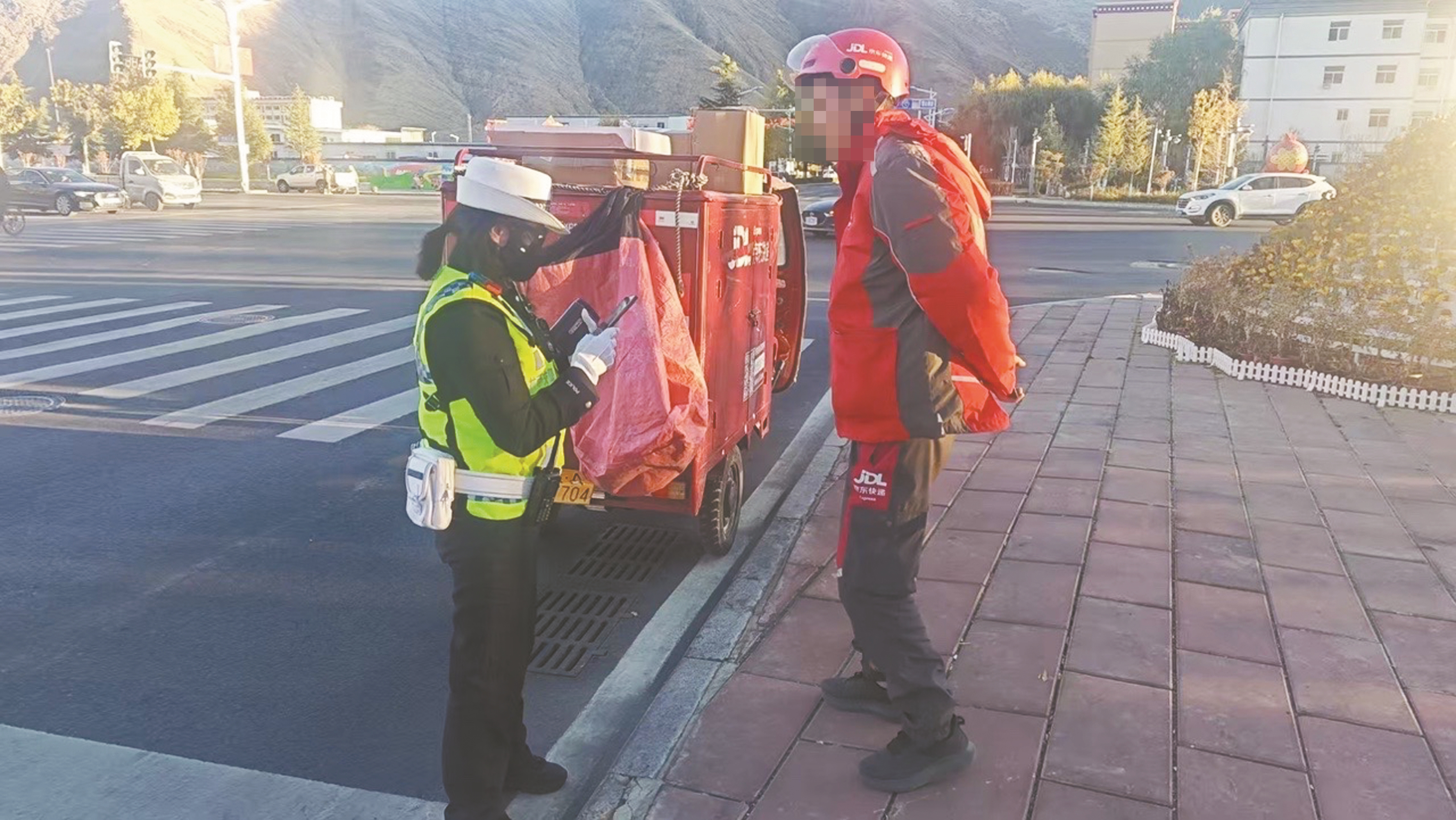 随着外卖寄递行业的快速发展,我市部分骑手为追求配送速度,忽视交通法规,闯红灯、逆行、超速等违法行为时有发生,给道路交通安全埋下隐患。为此,拉萨公安交管部门精准施策,在商圈、学校、主干道交叉口等重点区域设置整治卡点,采取“定点检查+流动巡逻”相结合的模式,对配送车辆各类交通违法行为进行严厉查处,坚决做到“见违必纠、纠违必处、处罚必严”,全力遏制违法高发态势,筑牢路面“安全屏障”。
