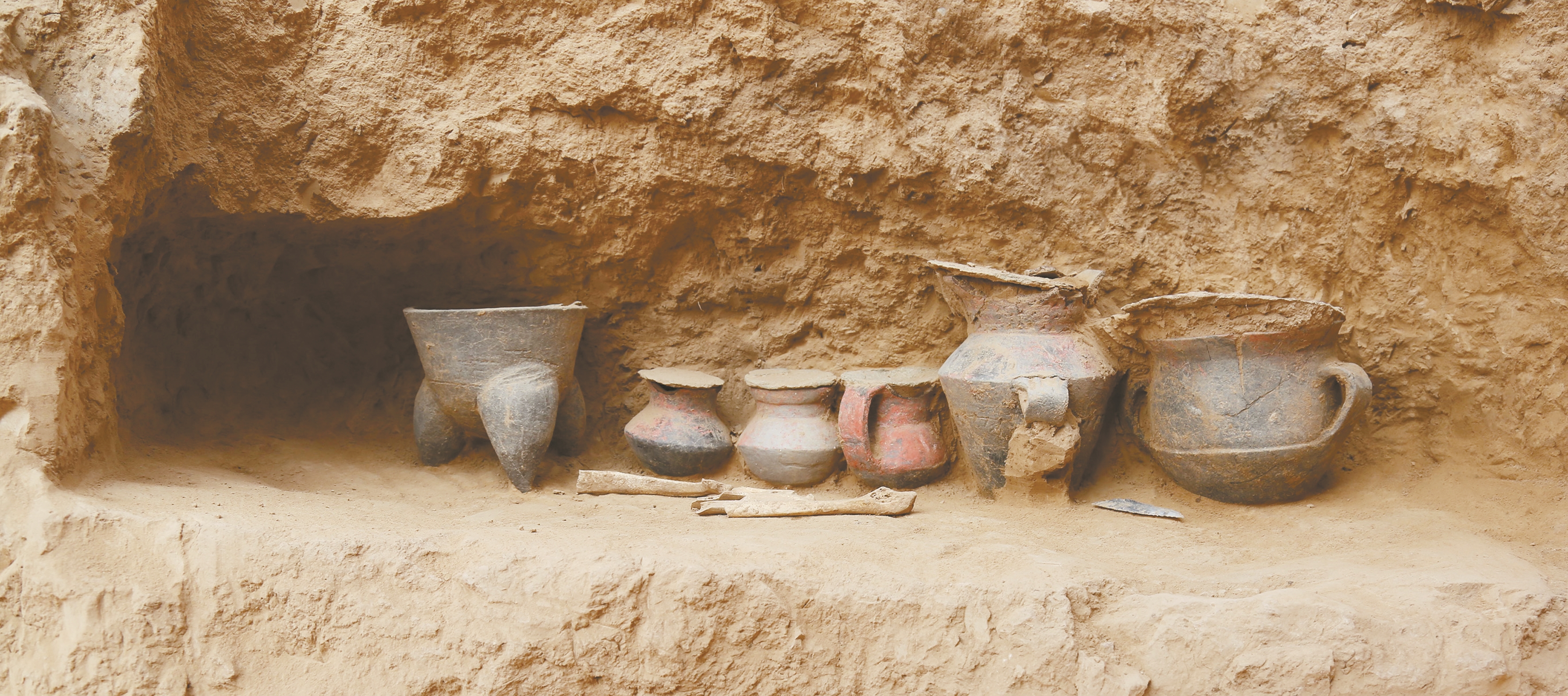 ▲这是陕西榆林石峁遗址墓葬M13壁龛器物(资料照片)。