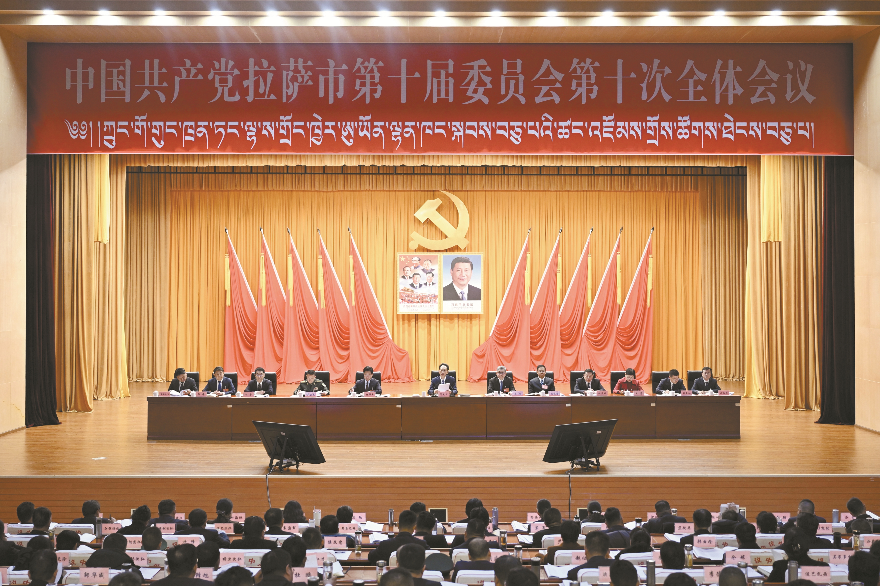 全会号召,全市各级党组织和广大党员干部要更加紧密地团结在以习近平同志为核心的党中央周围,在自治区党委的坚强领导下,万众一心、开拓进取,扎实推进拉萨长治久安和高质量发展,奋力当好“七个排头兵”,在新起点上全面铺开“共建中华民族共同体 书写美丽西藏新篇章”的拉萨实践!